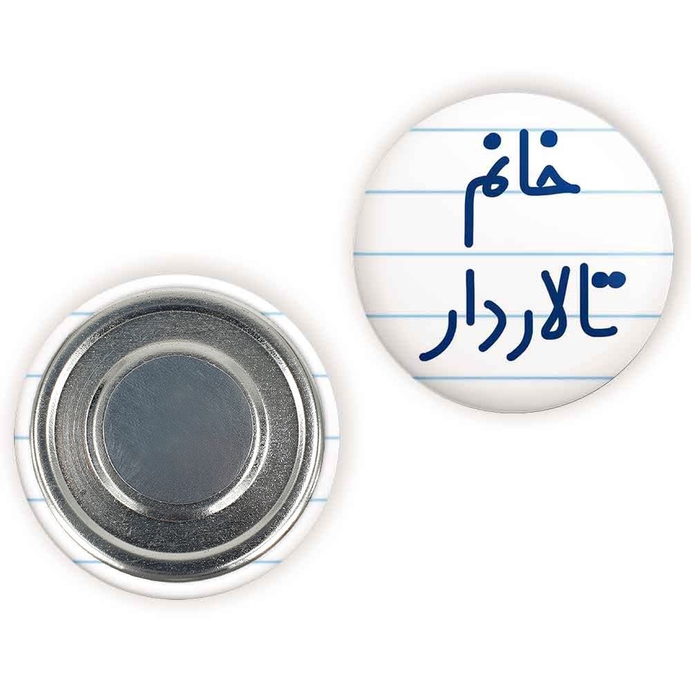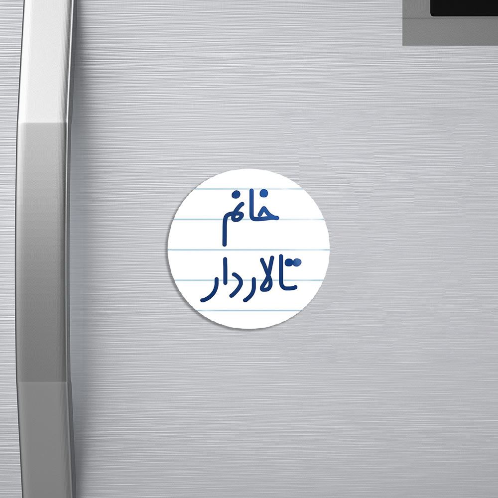 مگنت خانم تالاردار خندالو با روکش سلفون مات مخملی ضدخش و قطعه پشتی فلزی تولید شده است که آهنربای اتمی بکار برده شده در محصول، بصورت مخفی تعبیه شده ودیده نمی شود. ضمن اینکه گیرایی بسیار بالایی داشته و به هیچ عنوان از روی یخچال نمی افتد.