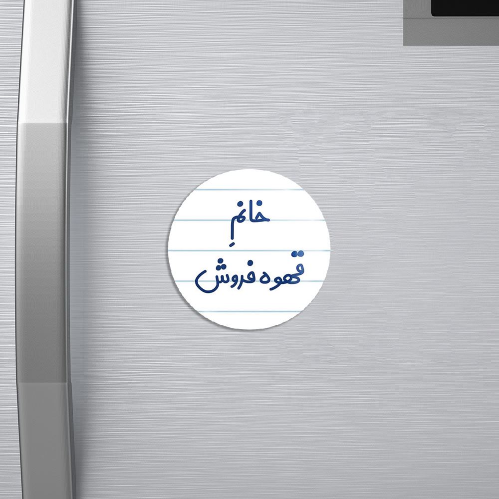 مگنت خانم قهوه فروش خندالو با روکش سلفون مات مخملی ضدخش و قطعه پشتی فلزی تولید شده است که آهنربای اتمی بکار برده شده در محصول، بصورت مخفی تعبیه شده ودیده نمی شود. ضمن اینکه گیرایی بسیار بالایی داشته و به هیچ عنوان از روی یخچال نمی افتد.