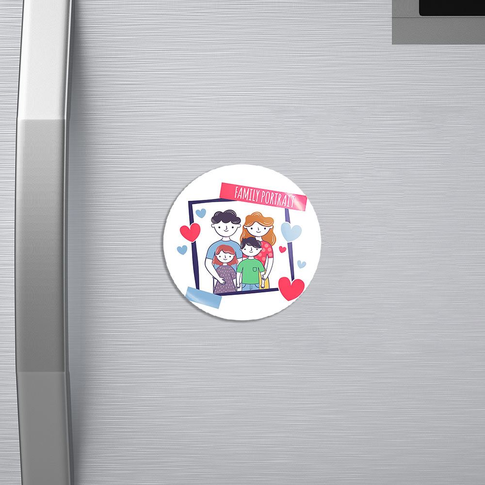 مگنت خانواده شاد خندالو با روکش سلفون مات مخملی ضدخش و قطعه پشتی فلزی تولید شده است که آهنربای اتمی بکار برده شده در محصول، بصورت مخفی تعبیه شده ودیده نمی شود. ضمن اینکه گیرایی بسیار بالایی داشته و به هیچ عنوان از روی یخچال نمی افتد.