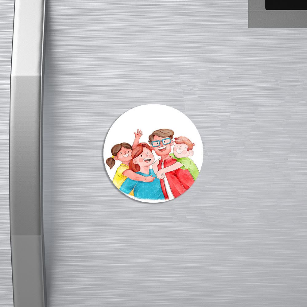 مگنت خانواده شاد خندالو با روکش سلفون مات مخملی ضدخش و قطعه پشتی فلزی تولید شده است که آهنربای اتمی بکار برده شده در محصول، بصورت مخفی تعبیه شده ودیده نمی شود. ضمن اینکه گیرایی بسیار بالایی داشته و به هیچ عنوان از روی یخچال نمی افتد.