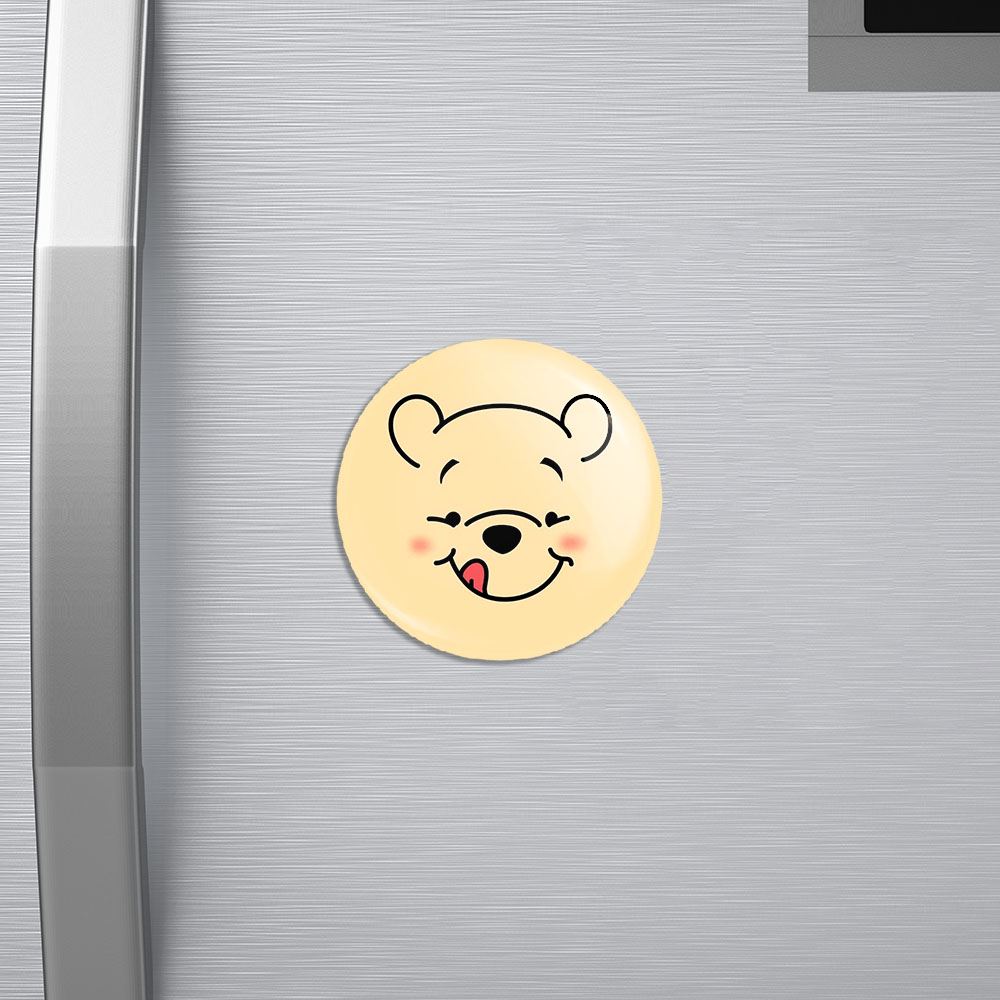 مگنت خرس پو Winnie The Pooh خندالو با روکش سلفون مات مخملی ضدخش و قطعه پشتی فلزی تولید شده است که آهنربای اتمی بکار برده شده در محصول، بصورت مخفی تعبیه شده ودیده نمی شود. ضمن اینکه گیرایی بسیار بالایی داشته و به هیچ عنوان از روی یخچال نمی افتد.