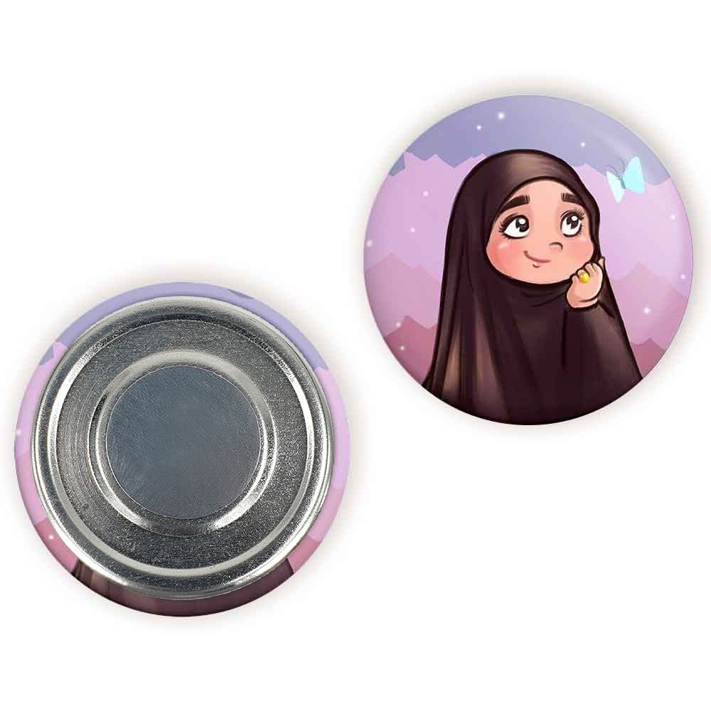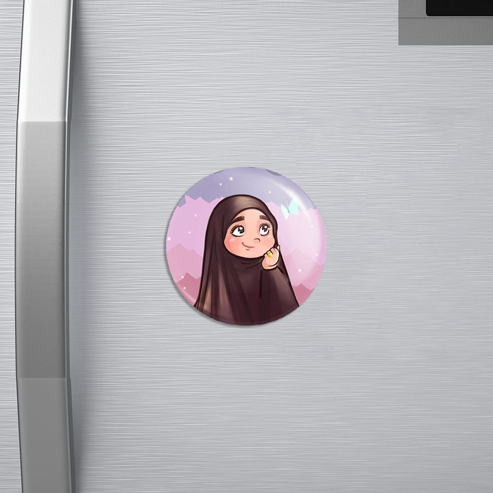 مگنت دخترانه باحجاب خندالو با روکش سلفون مات مخملی ضدخش و قطعه پشتی فلزی تولید شده است که آهنربای اتمی بکار برده شده در محصول، بصورت مخفی تعبیه شده ودیده نمی شود. ضمن اینکه گیرایی بسیار بالایی داشته و به هیچ عنوان از روی یخچال نمی افتد.