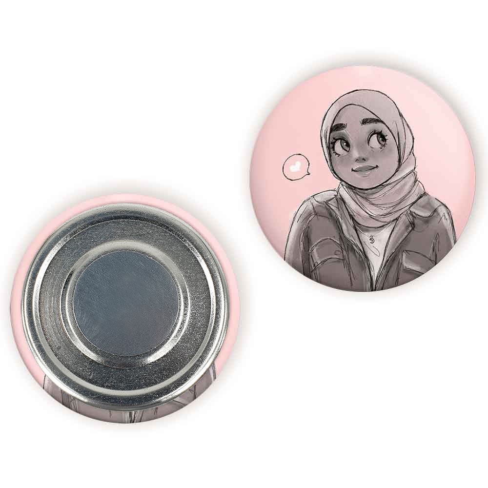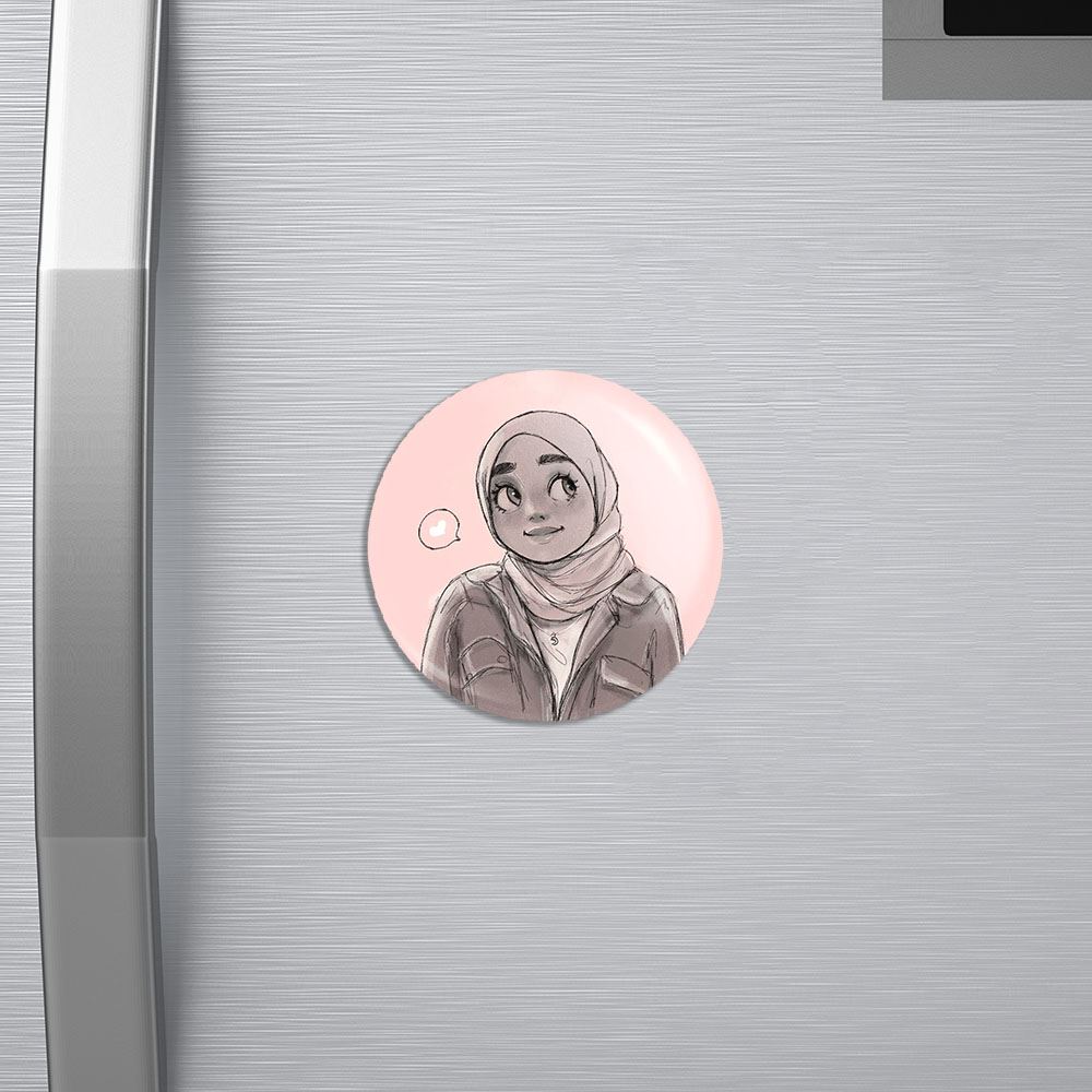 مگنت دخترانه باحجاب خندالو با روکش سلفون مات مخملی ضدخش و قطعه پشتی فلزی تولید شده است که آهنربای اتمی بکار برده شده در محصول، بصورت مخفی تعبیه شده ودیده نمی شود. ضمن اینکه گیرایی بسیار بالایی داشته و به هیچ عنوان از روی یخچال نمی افتد.