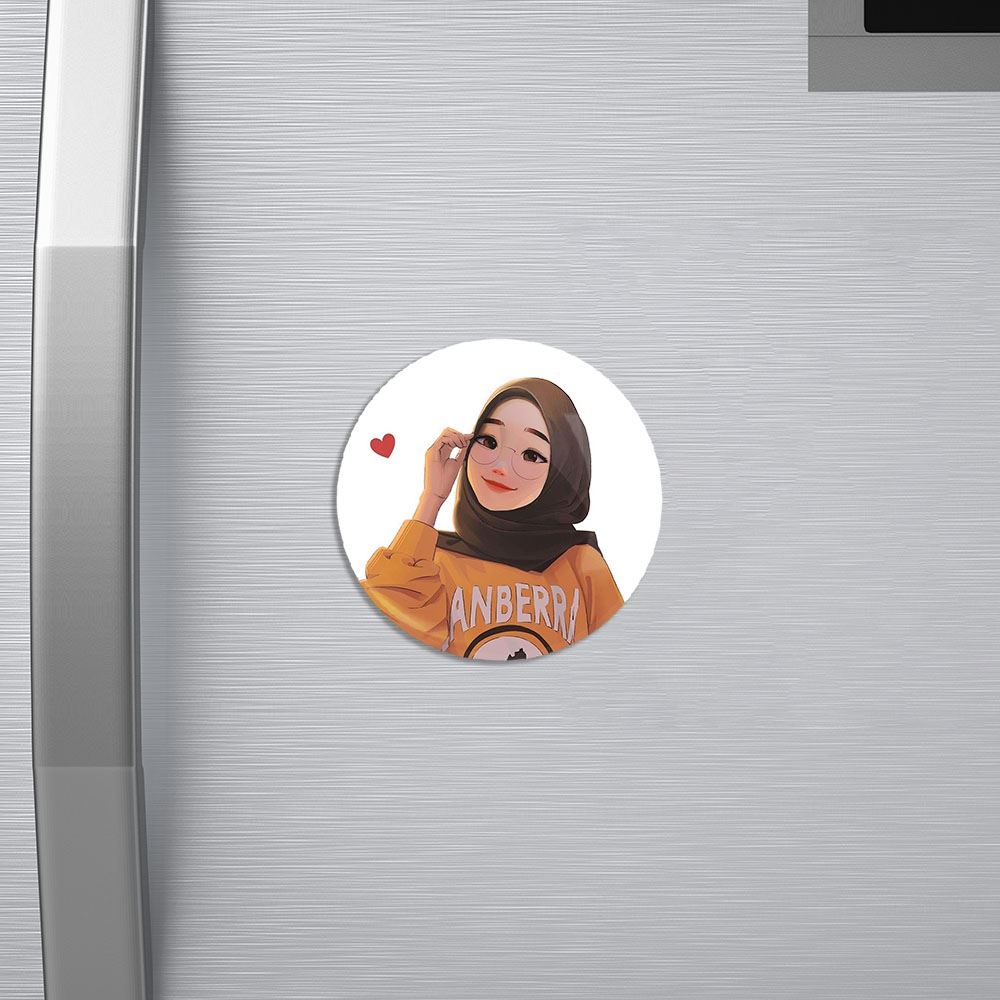 مگنت دخترانه باحجاب خندالو با روکش سلفون مات مخملی ضدخش و قطعه پشتی فلزی تولید شده است که آهنربای اتمی بکار برده شده در محصول، بصورت مخفی تعبیه شده ودیده نمی شود. ضمن اینکه گیرایی بسیار بالایی داشته و به هیچ عنوان از روی یخچال نمی افتد.