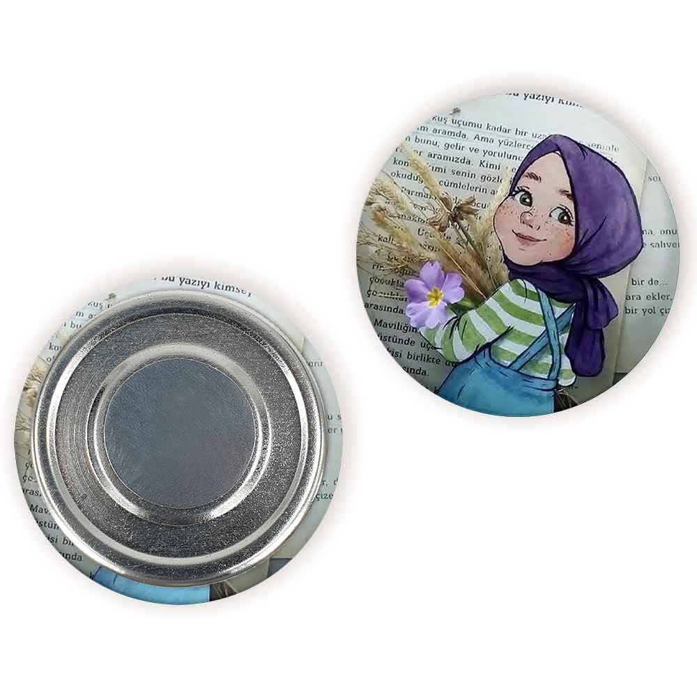 مگنت دخترانه باحجاب خندالو با روکش سلفون مات مخملی ضدخش و قطعه پشتی فلزی تولید شده است که آهنربای اتمی بکار برده شده در محصول، بصورت مخفی تعبیه شده ودیده نمی شود. ضمن اینکه گیرایی بسیار بالایی داشته و به هیچ عنوان از روی یخچال نمی افتد.