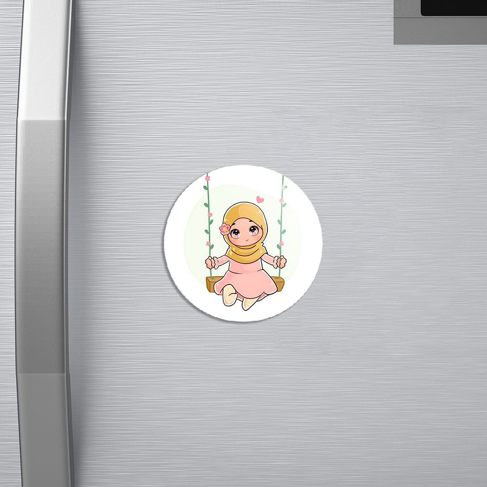 مگنت دخترانه باحجاب خندالو با روکش سلفون مات مخملی ضدخش و قطعه پشتی فلزی تولید شده است که آهنربای اتمی بکار برده شده در محصول، بصورت مخفی تعبیه شده ودیده نمی شود. ضمن اینکه گیرایی بسیار بالایی داشته و به هیچ عنوان از روی یخچال نمی افتد.