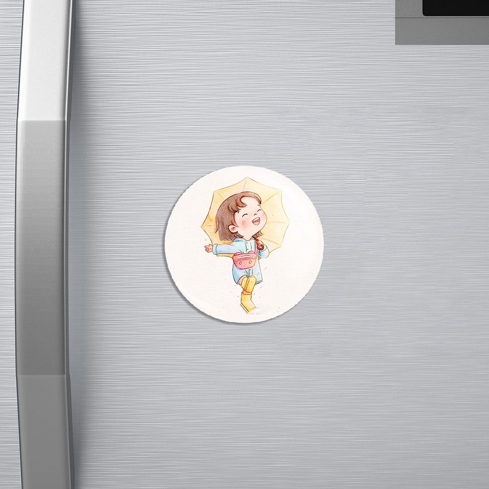 مگنت دخترانه کودکانه خندالو با روکش سلفون مات مخملی ضدخش و قطعه پشتی فلزی تولید شده است که آهنربای اتمی بکار برده شده در محصول، بصورت مخفی تعبیه شده ودیده نمی شود. ضمن اینکه گیرایی بسیار بالایی داشته و به هیچ عنوان از روی یخچال نمی افتد.