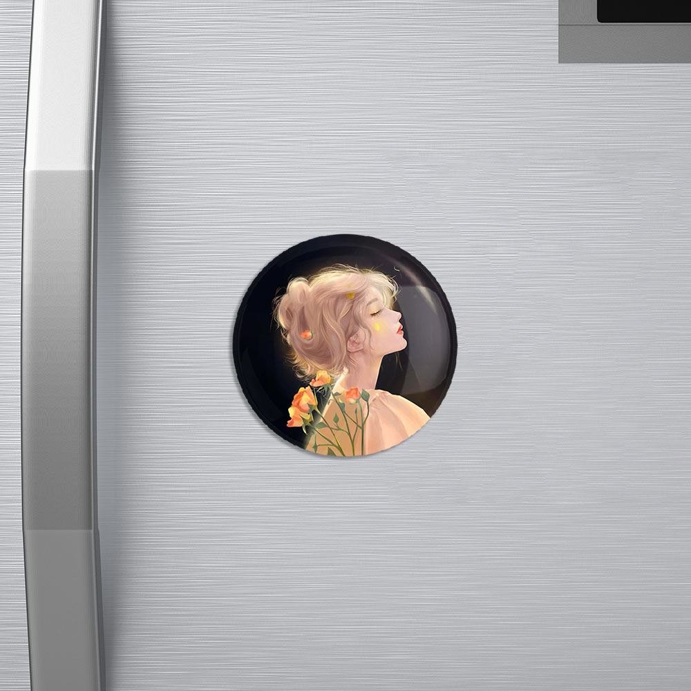 مگنت دخترانه خندالو با روکش سلفون مات مخملی ضدخش و قطعه پشتی فلزی تولید شده است که آهنربای اتمی بکار برده شده در محصول، بصورت مخفی تعبیه شده ودیده نمی شود. ضمن اینکه گیرایی بسیار بالایی داشته و به هیچ عنوان از روی یخچال نمی افتد.