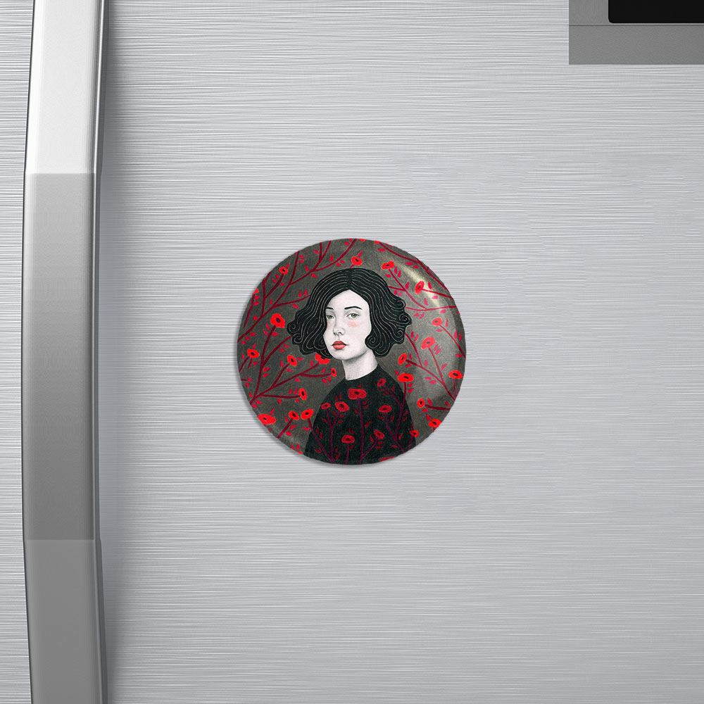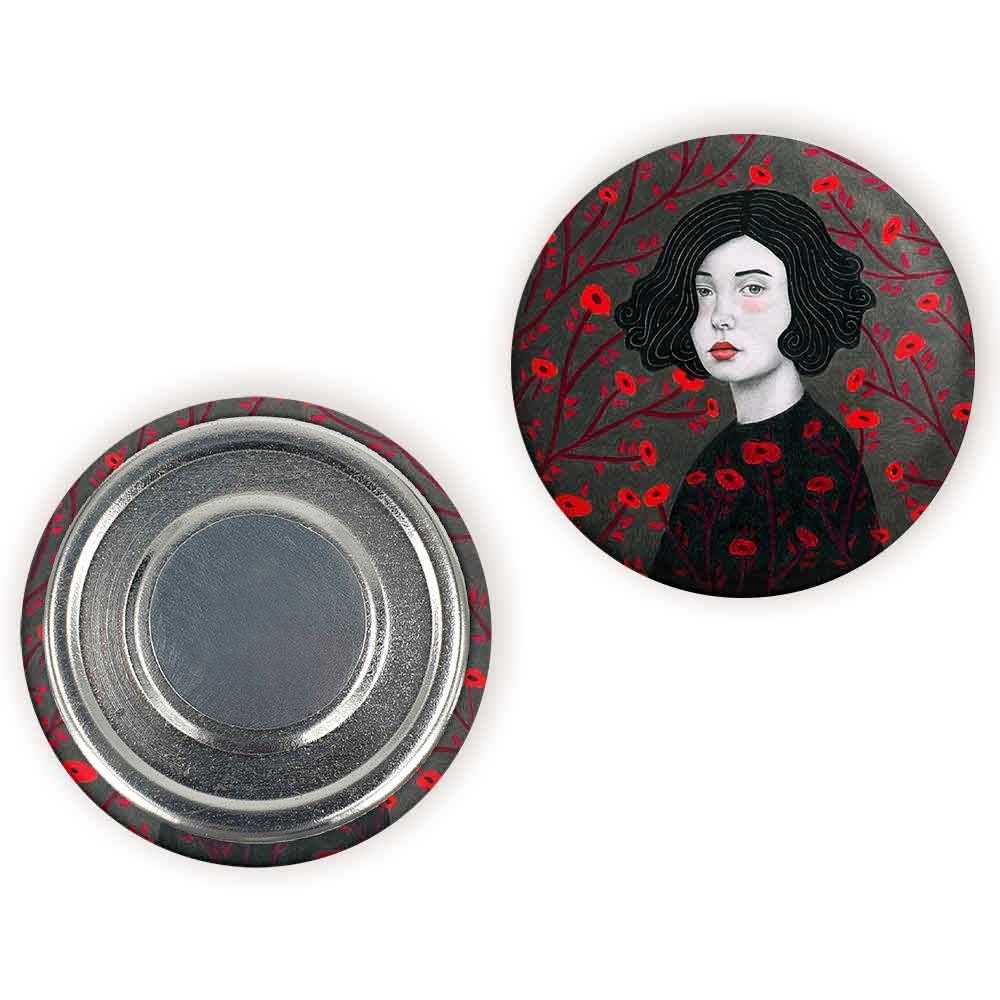 مگنت دخترانه خندالو با روکش سلفون مات مخملی ضدخش و قطعه پشتی فلزی تولید شده است که آهنربای اتمی بکار برده شده در محصول، بصورت مخفی تعبیه شده ودیده نمی شود. ضمن اینکه گیرایی بسیار بالایی داشته و به هیچ عنوان از روی یخچال نمی افتد.