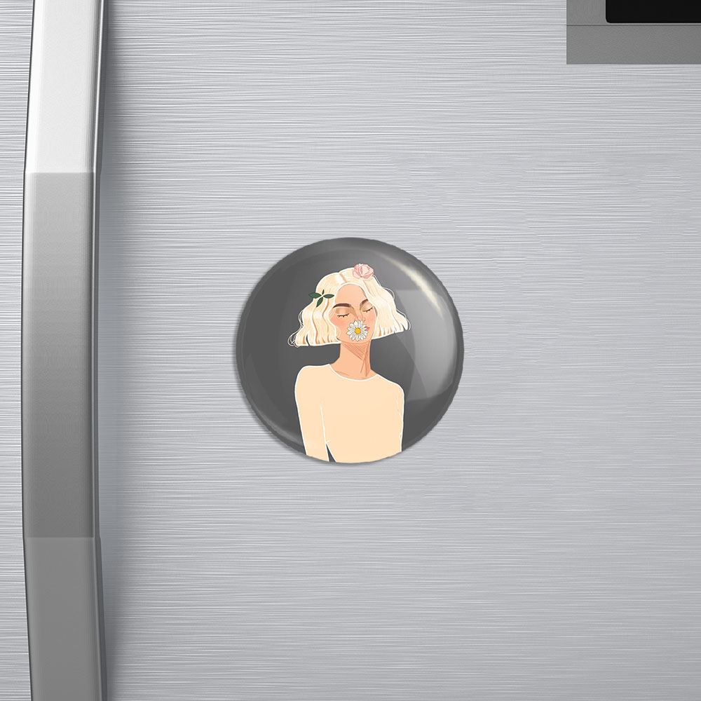 مگنت دخترانه خندالو با روکش سلفون مات مخملی ضدخش و قطعه پشتی فلزی تولید شده است که آهنربای اتمی بکار برده شده در محصول، بصورت مخفی تعبیه شده ودیده نمی شود. ضمن اینکه گیرایی بسیار بالایی داشته و به هیچ عنوان از روی یخچال نمی افتد.