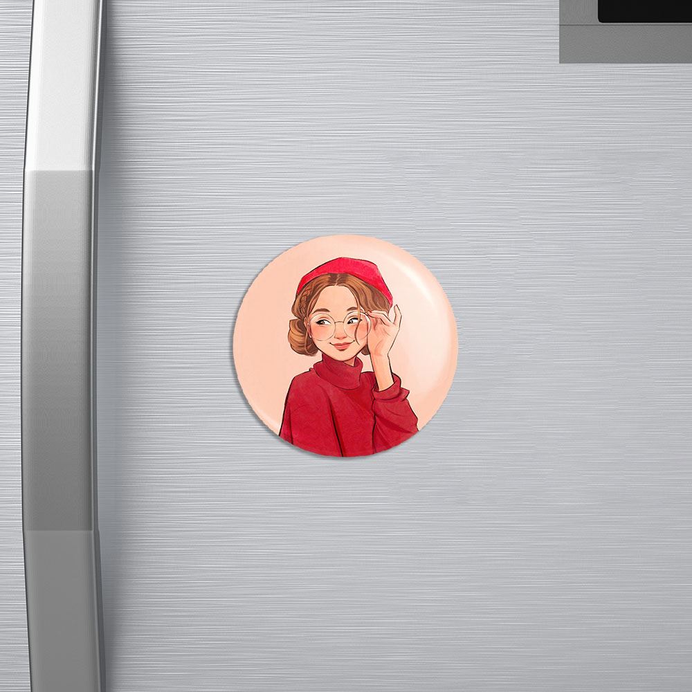 مگنت دخترانه خندالو با روکش سلفون مات مخملی ضدخش و قطعه پشتی فلزی تولید شده است که آهنربای اتمی بکار برده شده در محصول، بصورت مخفی تعبیه شده ودیده نمی شود. ضمن اینکه گیرایی بسیار بالایی داشته و به هیچ عنوان از روی یخچال نمی افتد.