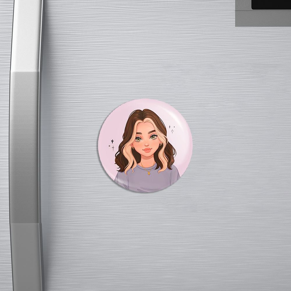 مگنت دخترانه خندالو با روکش سلفون مات مخملی ضدخش و قطعه پشتی فلزی تولید شده است که آهنربای اتمی بکار برده شده در محصول، بصورت مخفی تعبیه شده ودیده نمی شود. ضمن اینکه گیرایی بسیار بالایی داشته و به هیچ عنوان از روی یخچال نمی افتد.