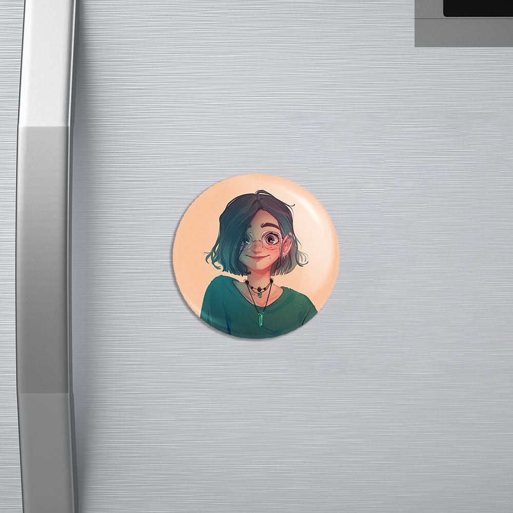مگنت دخترانه خندالو با روکش سلفون مات مخملی ضدخش و قطعه پشتی فلزی تولید شده است که آهنربای اتمی بکار برده شده در محصول، بصورت مخفی تعبیه شده ودیده نمی شود. ضمن اینکه گیرایی بسیار بالایی داشته و به هیچ عنوان از روی یخچال نمی افتد.