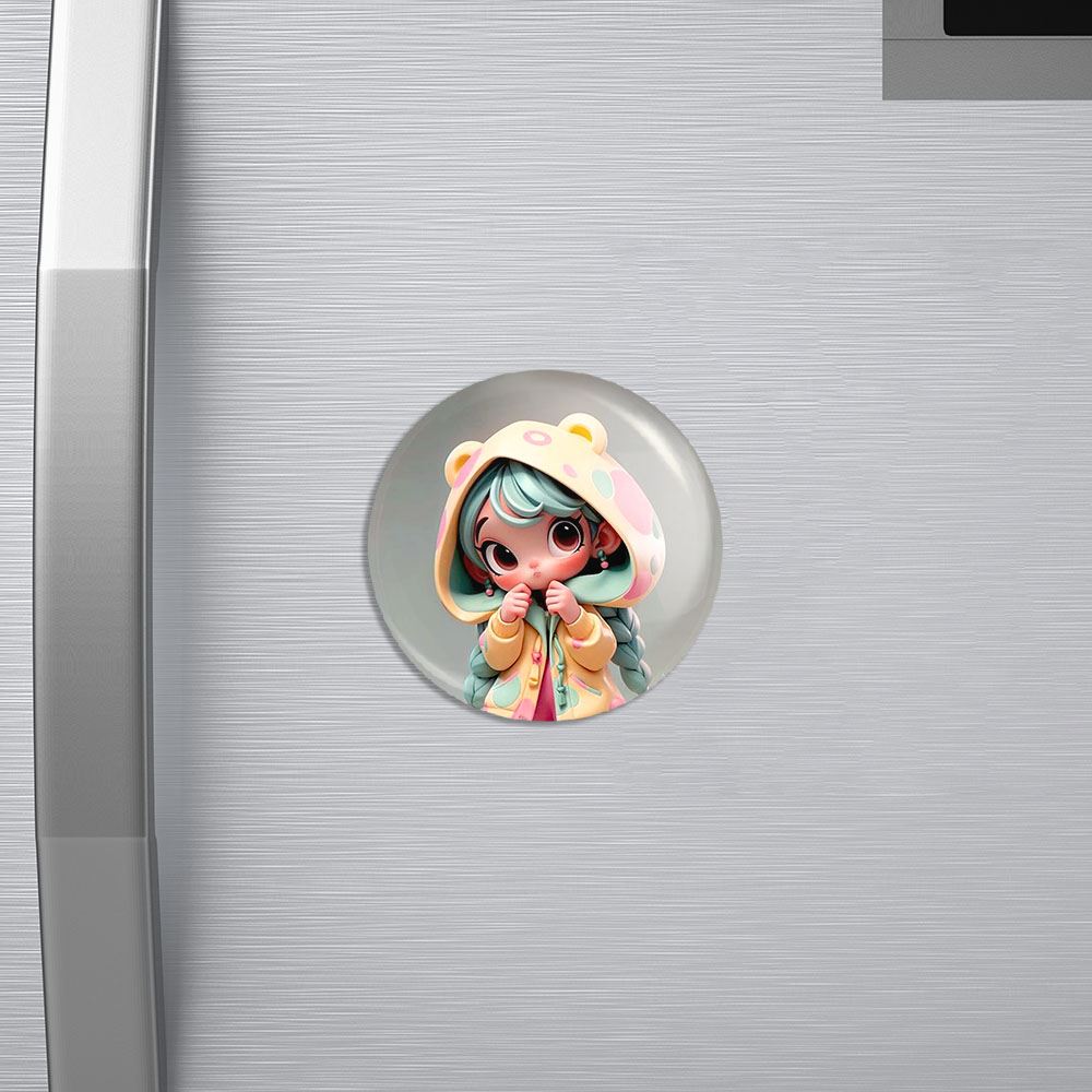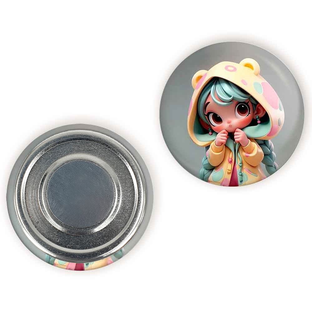 مگنت دخترانه خندالو با روکش سلفون مات مخملی ضدخش و قطعه پشتی فلزی تولید شده است که آهنربای اتمی بکار برده شده در محصول، بصورت مخفی تعبیه شده ودیده نمی شود. ضمن اینکه گیرایی بسیار بالایی داشته و به هیچ عنوان از روی یخچال نمی افتد.