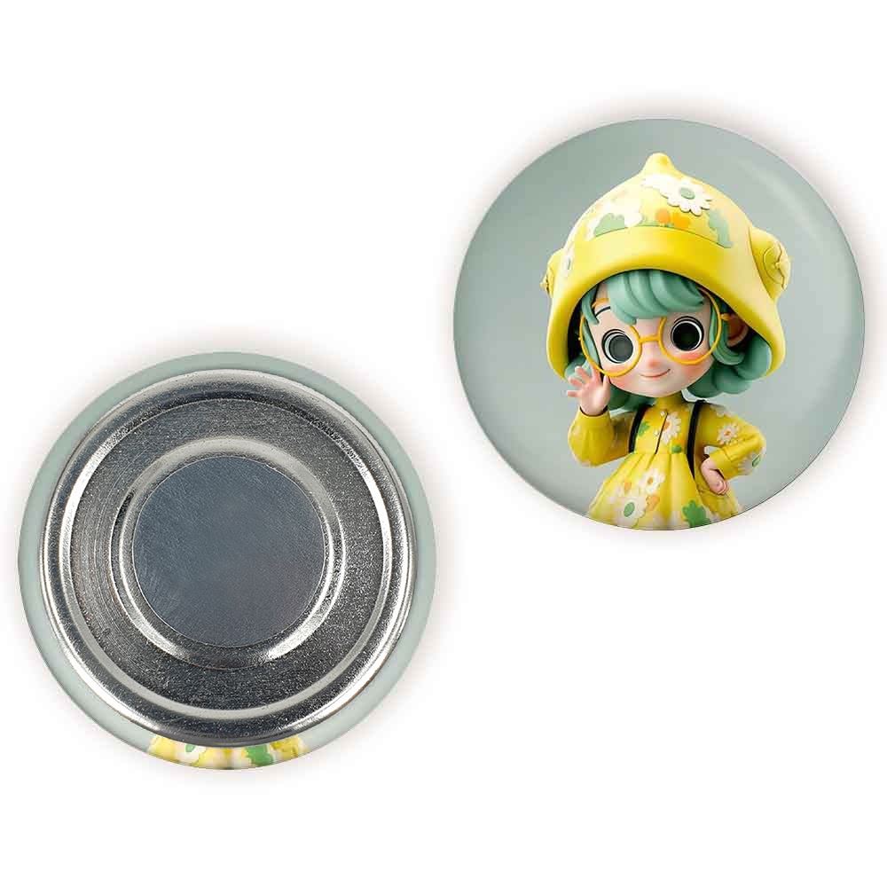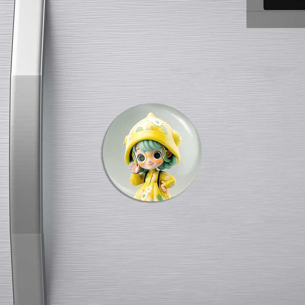 مگنت دخترانه خندالو با روکش سلفون مات مخملی ضدخش و قطعه پشتی فلزی تولید شده است که آهنربای اتمی بکار برده شده در محصول، بصورت مخفی تعبیه شده ودیده نمی شود. ضمن اینکه گیرایی بسیار بالایی داشته و به هیچ عنوان از روی یخچال نمی افتد.