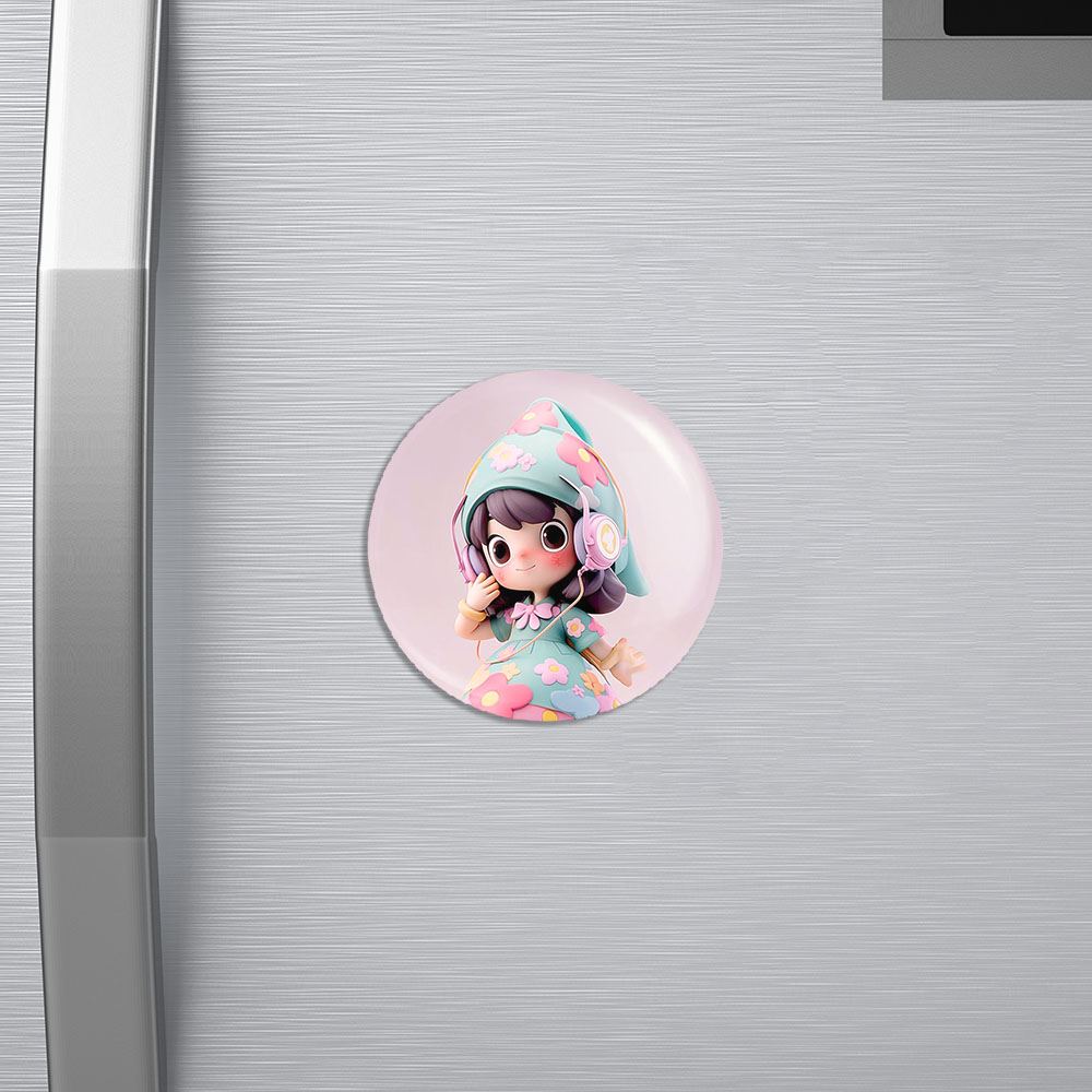 مگنت دخترانه خندالو با روکش سلفون مات مخملی ضدخش و قطعه پشتی فلزی تولید شده است که آهنربای اتمی بکار برده شده در محصول، بصورت مخفی تعبیه شده ودیده نمی شود. ضمن اینکه گیرایی بسیار بالایی داشته و به هیچ عنوان از روی یخچال نمی افتد.