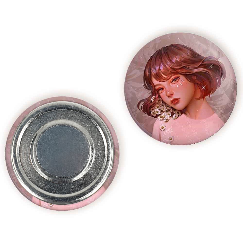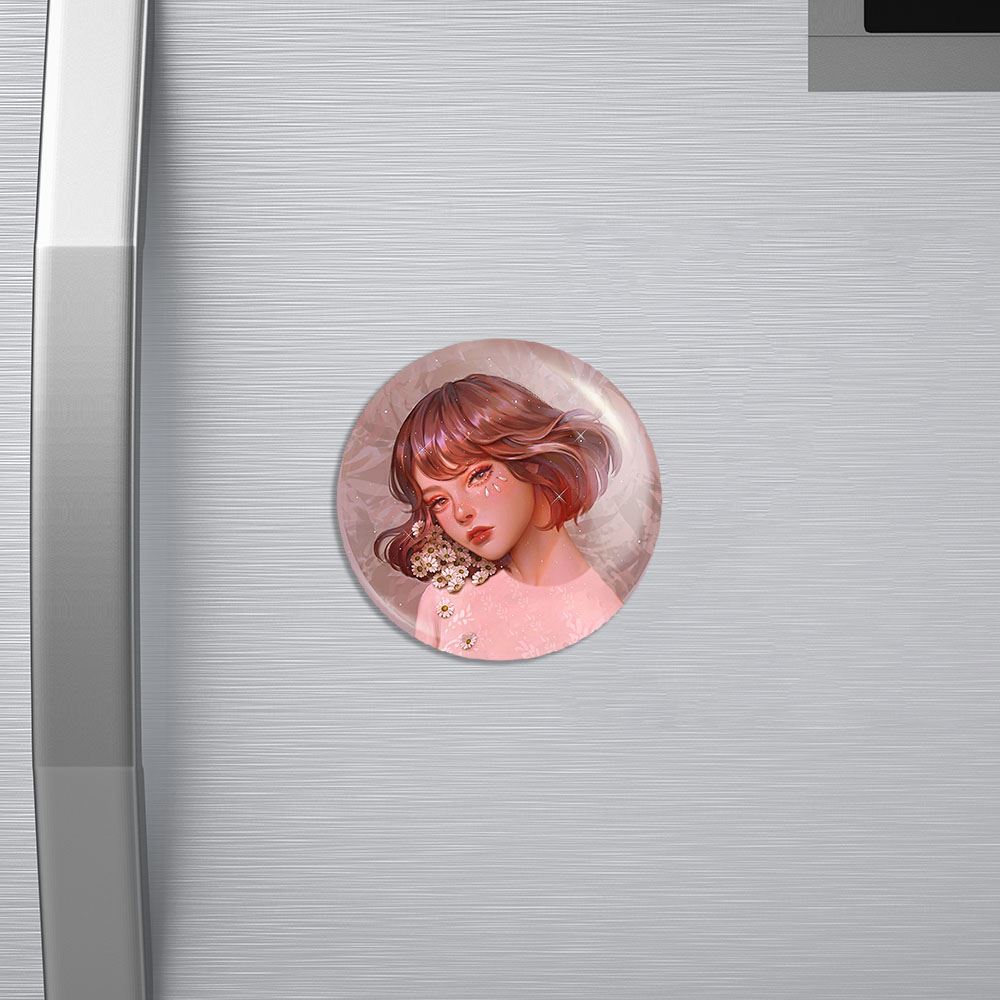 مگنت دخترانه خندالو با روکش سلفون مات مخملی ضدخش و قطعه پشتی فلزی تولید شده است که آهنربای اتمی بکار برده شده در محصول، بصورت مخفی تعبیه شده ودیده نمی شود. ضمن اینکه گیرایی بسیار بالایی داشته و به هیچ عنوان از روی یخچال نمی افتد.