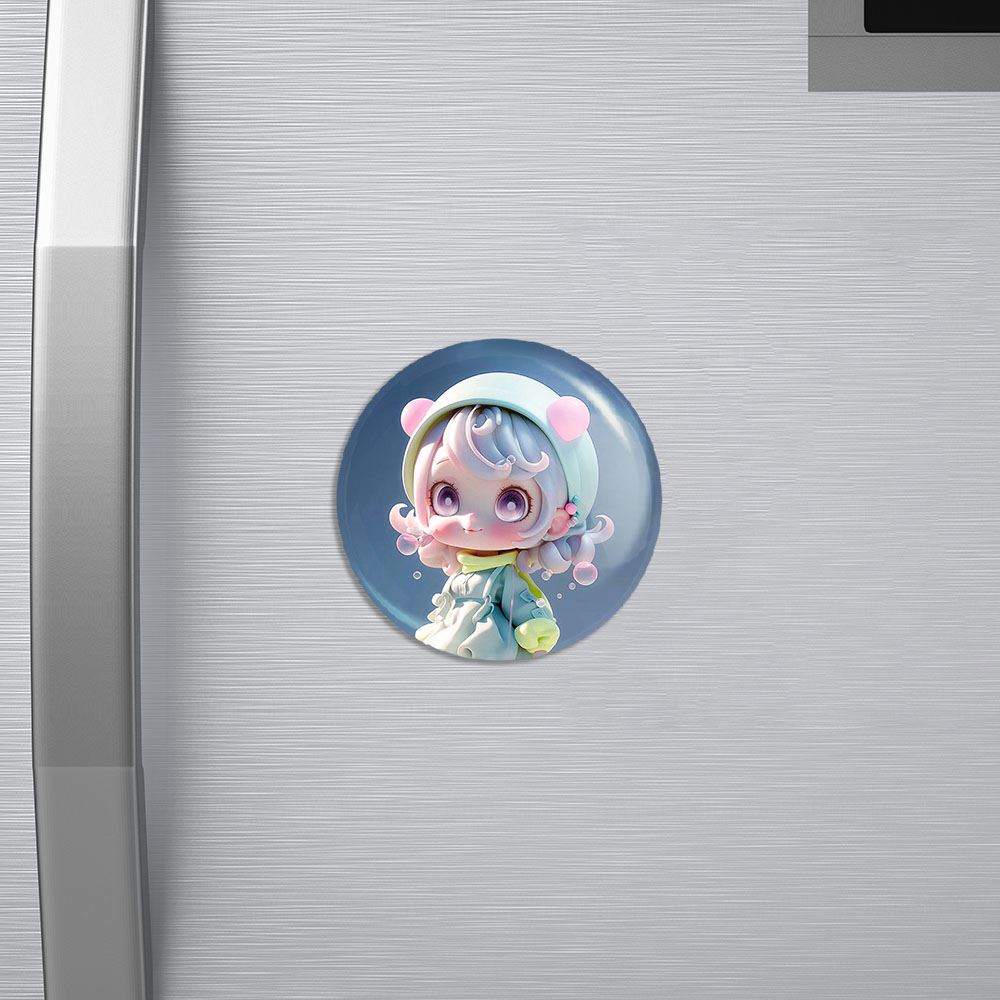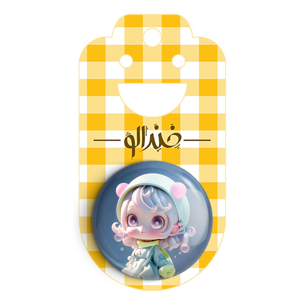 مگنت دخترانه خندالو با روکش سلفون مات مخملی ضدخش و قطعه پشتی فلزی تولید شده است که آهنربای اتمی بکار برده شده در محصول، بصورت مخفی تعبیه شده ودیده نمی شود. ضمن اینکه گیرایی بسیار بالایی داشته و به هیچ عنوان از روی یخچال نمی افتد.