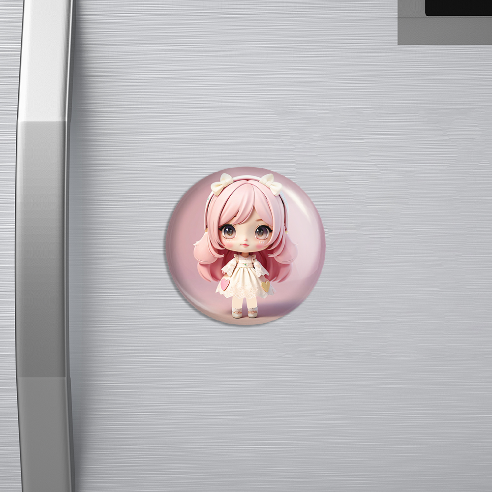 مگنت دخترانه (Girlish) خندالو با روکش سلفون مات مخملی ضدخش و قطعه پشتی فلزی تولید شده است که آهنربای اتمی بکار برده شده در محصول، بصورت مخفی تعبیه شده ودیده نمی شود. ضمن اینکه گیرایی بسیار بالایی داشته و به هیچ عنوان از روی یخچال نمی افتد.