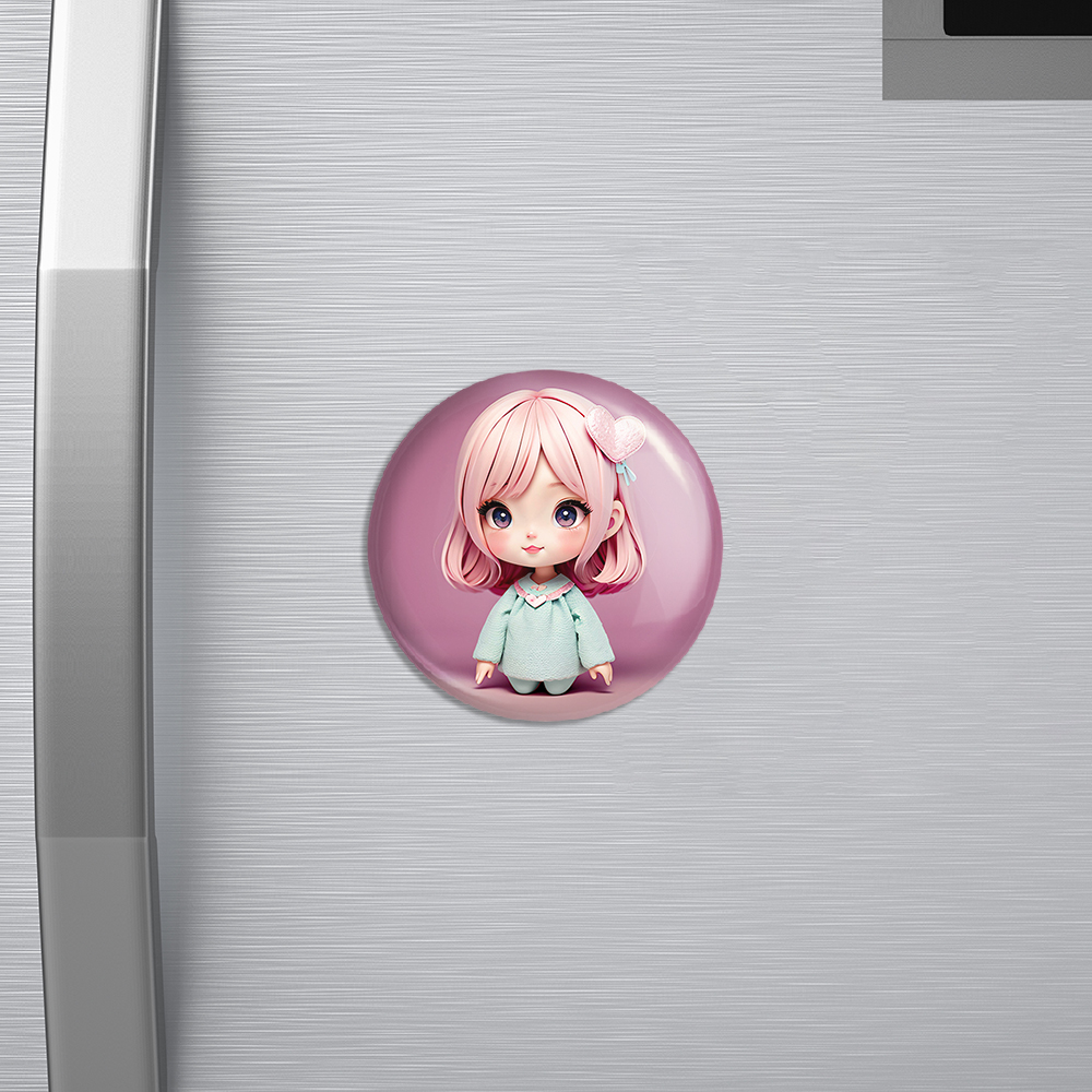 مگنت دخترانه (Girlish) خندالو با روکش سلفون مات مخملی ضدخش و قطعه پشتی فلزی تولید شده است که آهنربای اتمی بکار برده شده در محصول، بصورت مخفی تعبیه شده ودیده نمی شود. ضمن اینکه گیرایی بسیار بالایی داشته و به هیچ عنوان از روی یخچال نمی افتد.