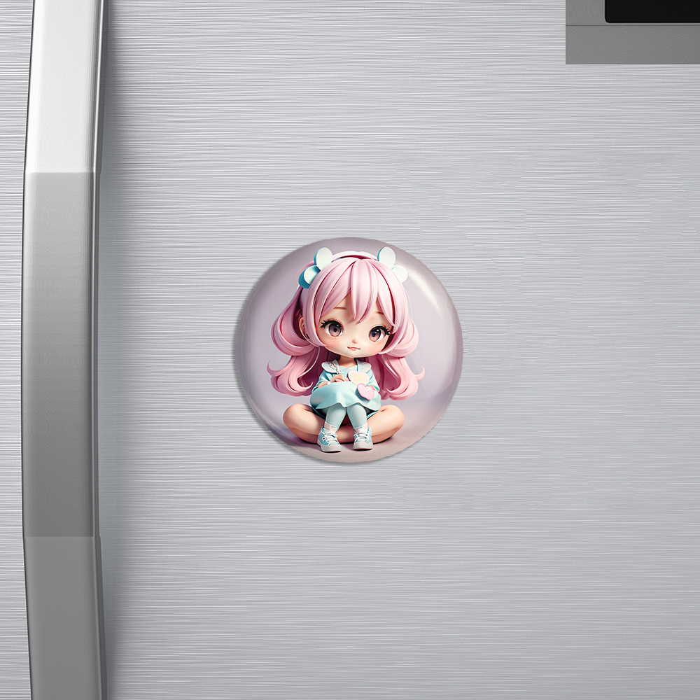 مگنت دخترانه (Girlish) خندالو با روکش سلفون مات مخملی ضدخش و قطعه پشتی فلزی تولید شده است که آهنربای اتمی بکار برده شده در محصول، بصورت مخفی تعبیه شده ودیده نمی شود. ضمن اینکه گیرایی بسیار بالایی داشته و به هیچ عنوان از روی یخچال نمی افتد.