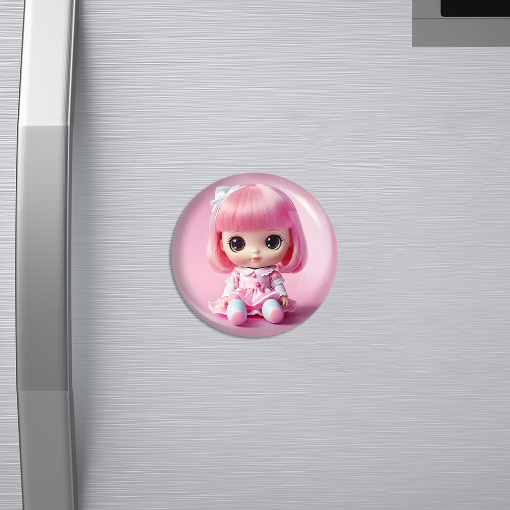 مگنت دخترانه (Girlish) خندالو با روکش سلفون مات مخملی ضدخش و قطعه پشتی فلزی تولید شده است که آهنربای اتمی بکار برده شده در محصول، بصورت مخفی تعبیه شده ودیده نمی شود. ضمن اینکه گیرایی بسیار بالایی داشته و به هیچ عنوان از روی یخچال نمی افتد.