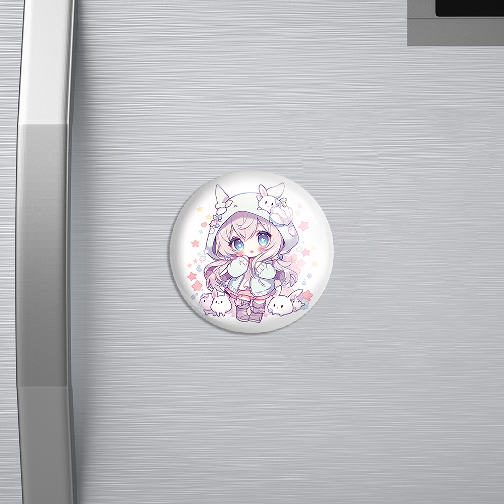 مگنت دخترانه (Girlish) خندالو با روکش سلفون مات مخملی ضدخش و قطعه پشتی فلزی تولید شده است که آهنربای اتمی بکار برده شده در محصول، بصورت مخفی تعبیه شده ودیده نمی شود. ضمن اینکه گیرایی بسیار بالایی داشته و به هیچ عنوان از روی یخچال نمی افتد.