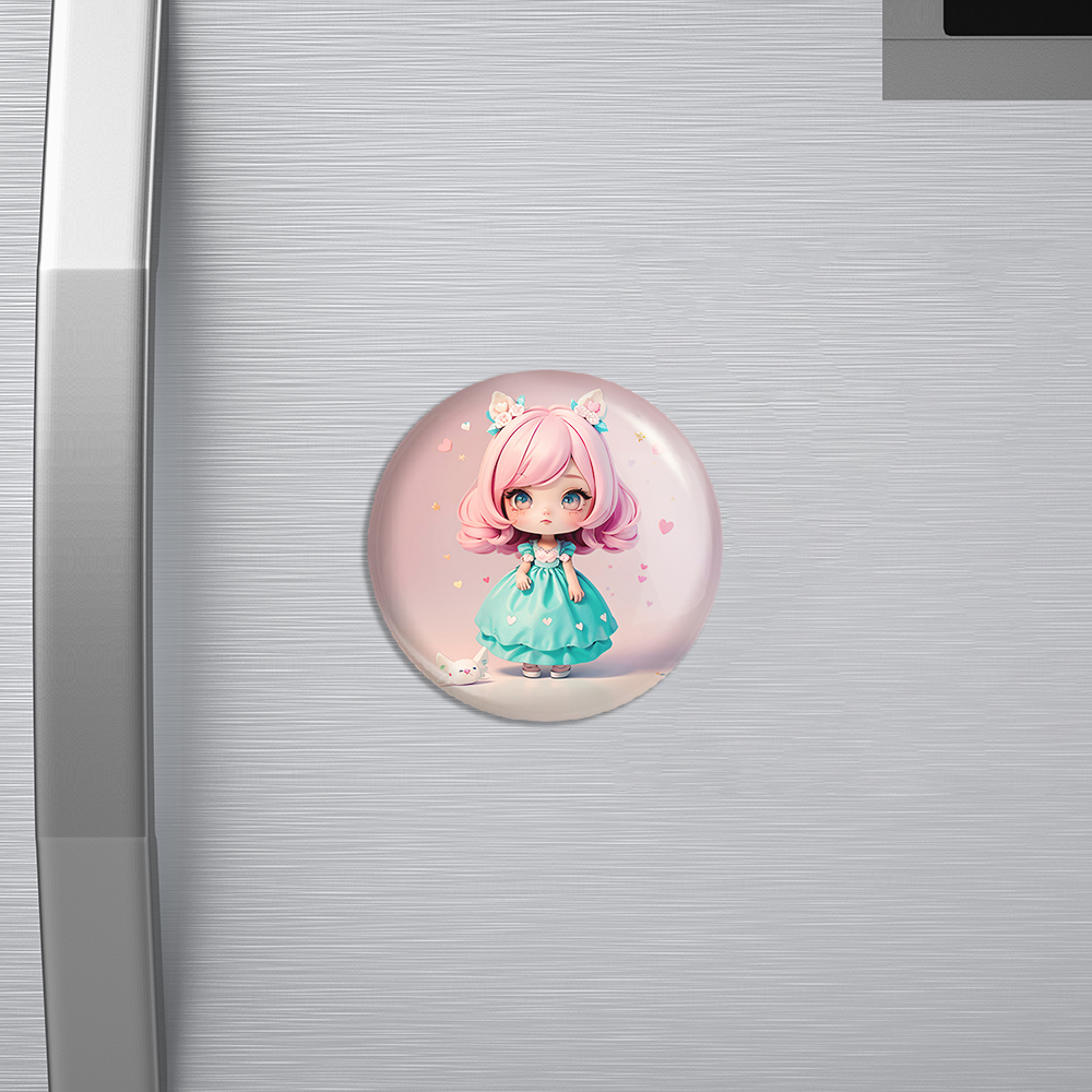 مگنت دخترانه (Girlish) خندالو با روکش سلفون مات مخملی ضدخش و قطعه پشتی فلزی تولید شده است که آهنربای اتمی بکار برده شده در محصول، بصورت مخفی تعبیه شده ودیده نمی شود. ضمن اینکه گیرایی بسیار بالایی داشته و به هیچ عنوان از روی یخچال نمی افتد.