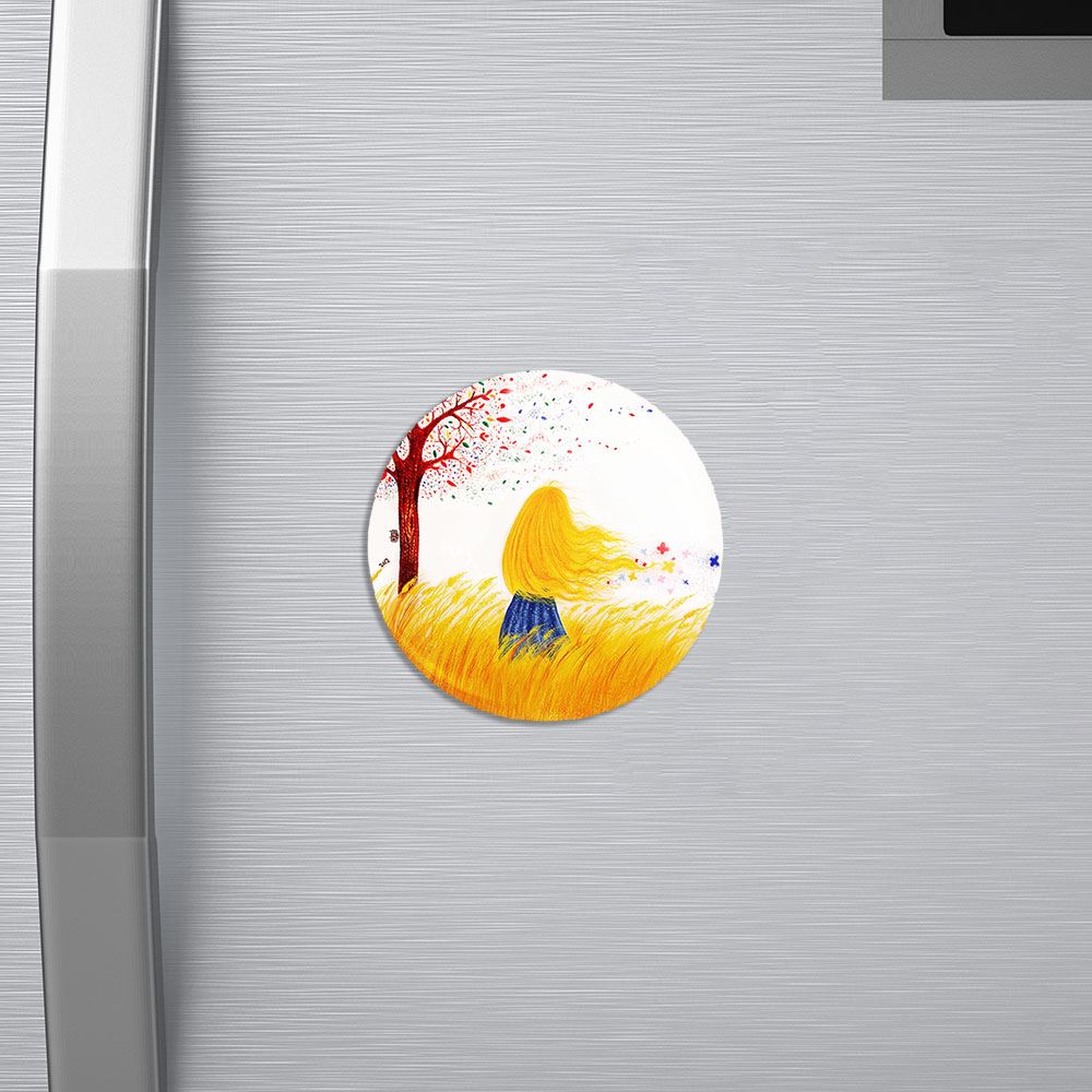 مگنت دخترونه خندالو با روکش سلفون مات مخملی ضدخش و قطعه پشتی فلزی تولید شده است که آهنربای اتمی بکار برده شده در محصول، بصورت مخفی تعبیه شده ودیده نمی شود. ضمن اینکه گیرایی بسیار بالایی داشته و به هیچ عنوان از روی یخچال نمی افتد.