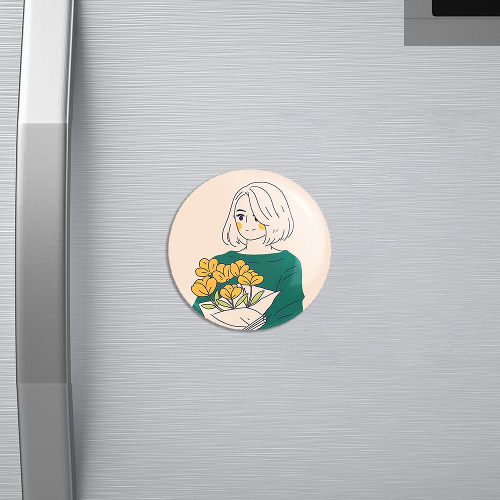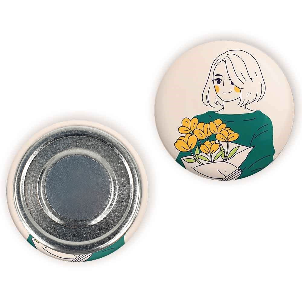 مگنت دخترونه خندالو با روکش سلفون مات مخملی ضدخش و قطعه پشتی فلزی تولید شده است که آهنربای اتمی بکار برده شده در محصول، بصورت مخفی تعبیه شده ودیده نمی شود. ضمن اینکه گیرایی بسیار بالایی داشته و به هیچ عنوان از روی یخچال نمی افتد.