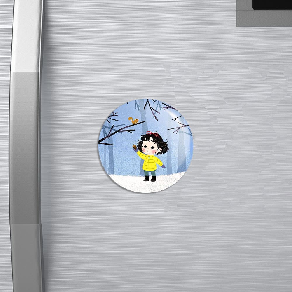 مگنت دخترونه خندالو با روکش سلفون مات مخملی ضدخش و قطعه پشتی فلزی تولید شده است که آهنربای اتمی بکار برده شده در محصول، بصورت مخفی تعبیه شده ودیده نمی شود. ضمن اینکه گیرایی بسیار بالایی داشته و به هیچ عنوان از روی یخچال نمی افتد.