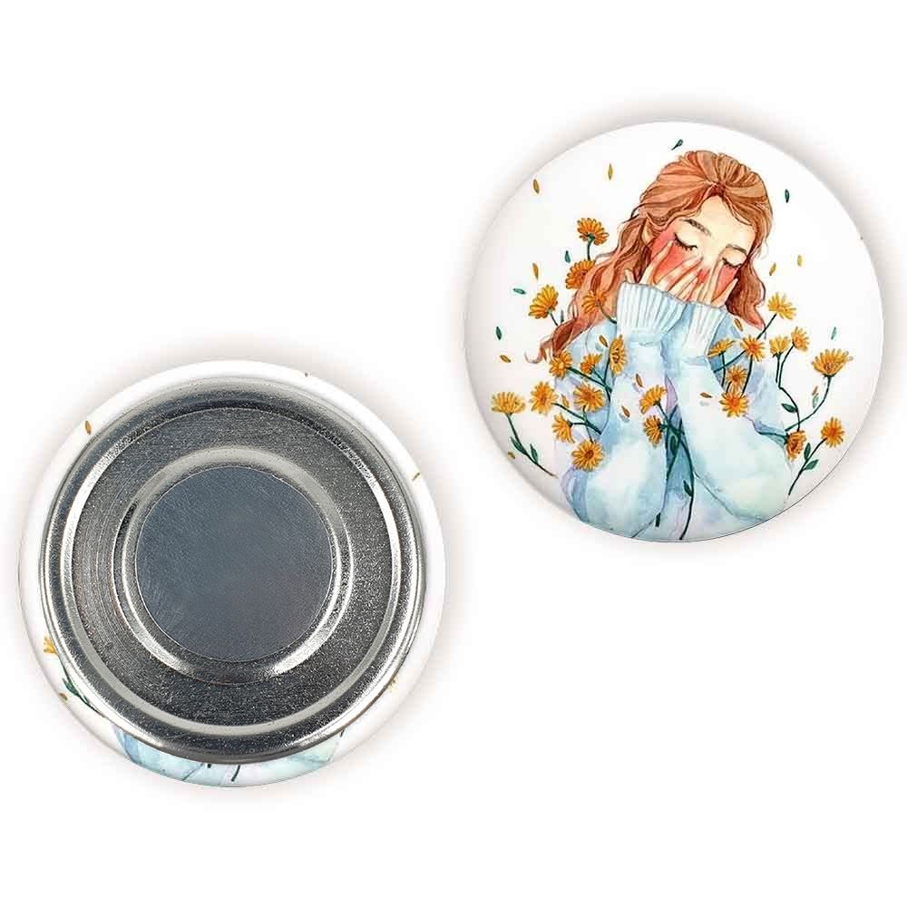 مگنت دخترونه خندالو با روکش سلفون مات مخملی ضدخش و قطعه پشتی فلزی تولید شده است که آهنربای اتمی بکار برده شده در محصول، بصورت مخفی تعبیه شده ودیده نمی شود. ضمن اینکه گیرایی بسیار بالایی داشته و به هیچ عنوان از روی یخچال نمی افتد.