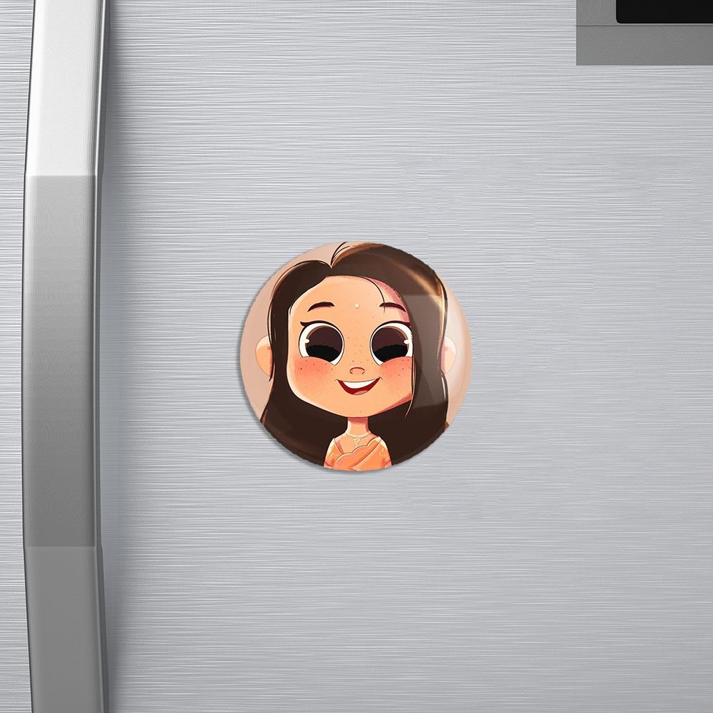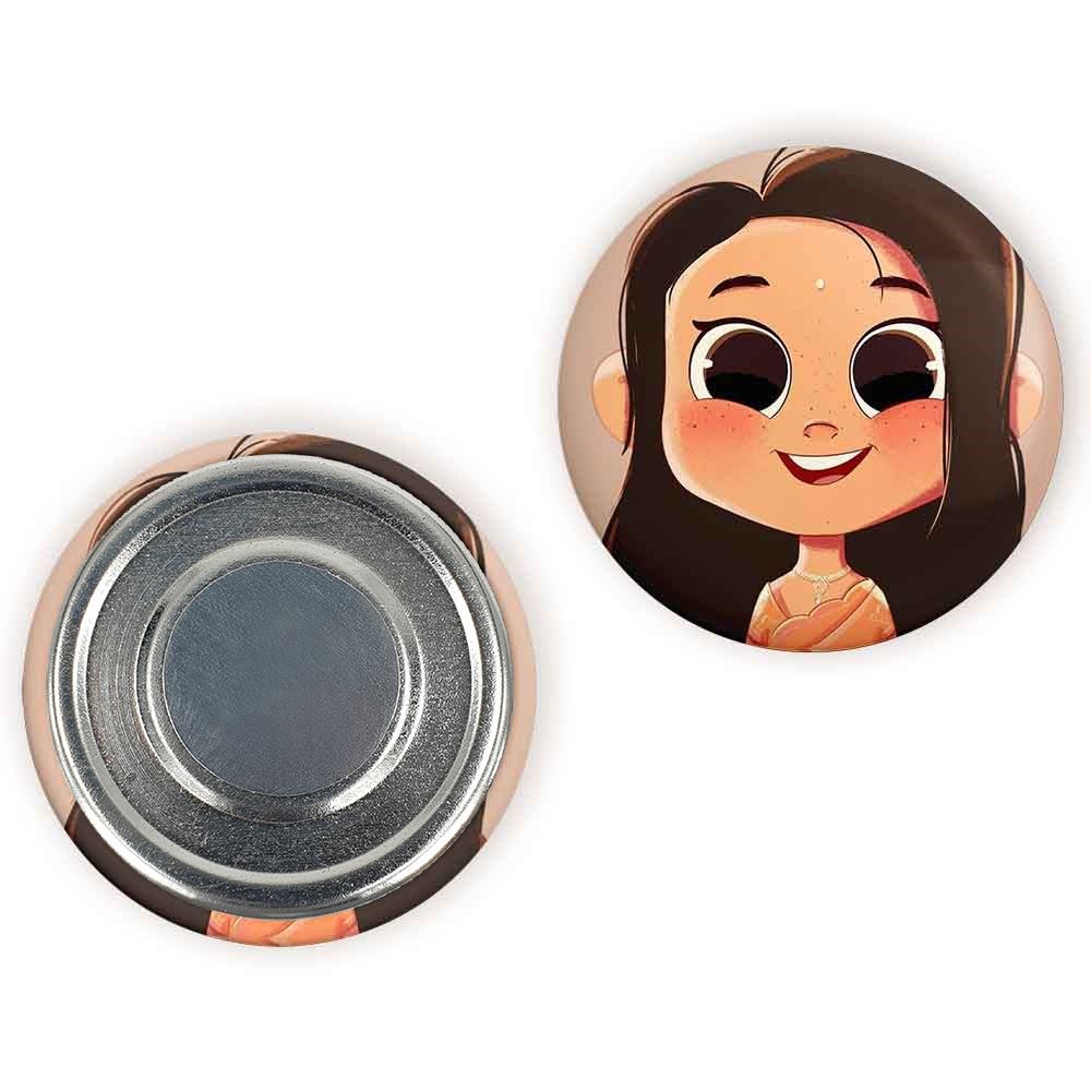 مگنت دخترونه خندالو با روکش سلفون مات مخملی ضدخش و قطعه پشتی فلزی تولید شده است که آهنربای اتمی بکار برده شده در محصول، بصورت مخفی تعبیه شده ودیده نمی شود. ضمن اینکه گیرایی بسیار بالایی داشته و به هیچ عنوان از روی یخچال نمی افتد.