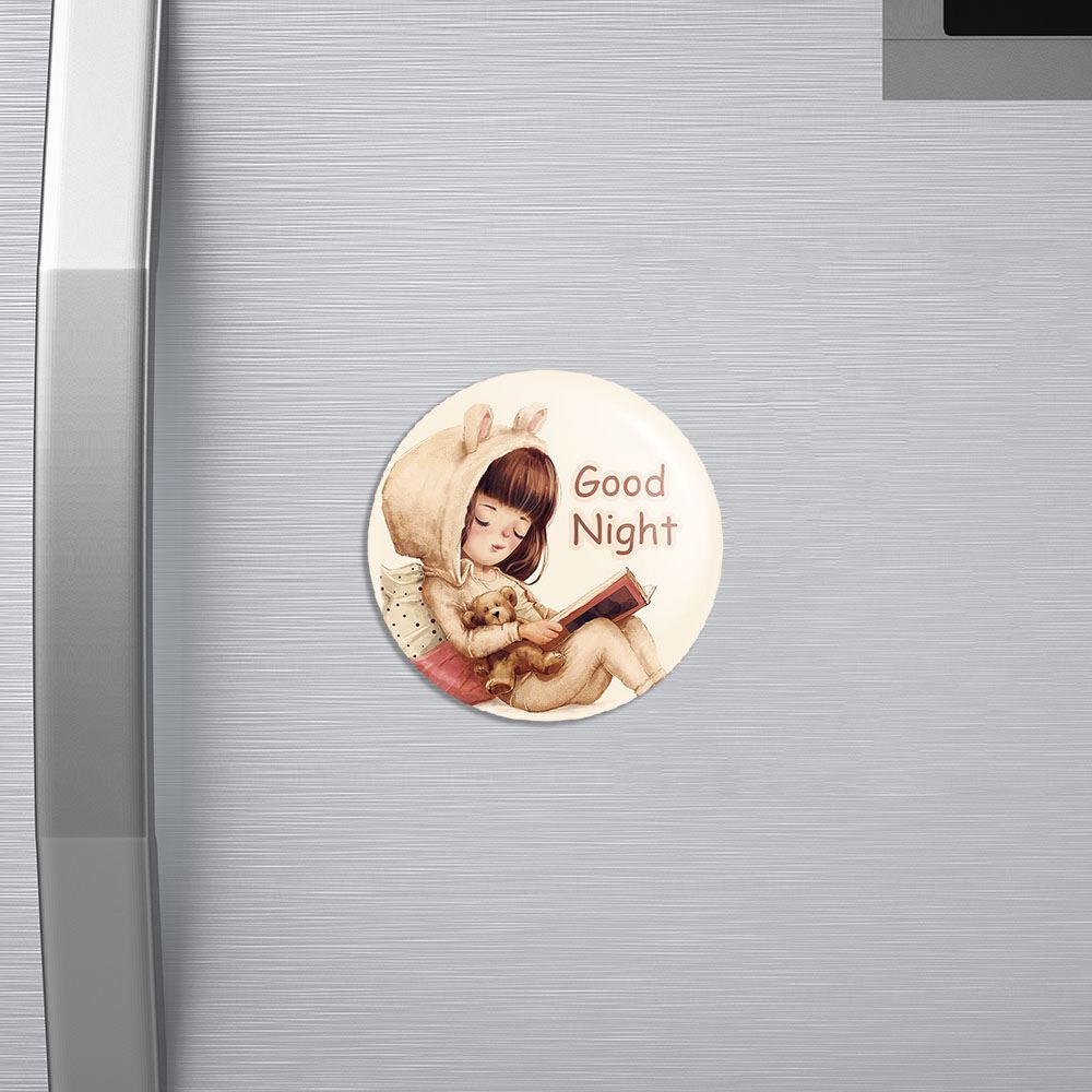 مگنت دخترونه خندالو با روکش سلفون مات مخملی ضدخش و قطعه پشتی فلزی تولید شده است که آهنربای اتمی بکار برده شده در محصول، بصورت مخفی تعبیه شده ودیده نمی شود. ضمن اینکه گیرایی بسیار بالایی داشته و به هیچ عنوان از روی یخچال نمی افتد.