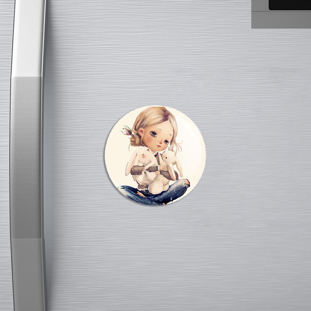مگنت دخترونه خندالو با روکش سلفون مات مخملی ضدخش و قطعه پشتی فلزی تولید شده است که آهنربای اتمی بکار برده شده در محصول، بصورت مخفی تعبیه شده ودیده نمی شود. ضمن اینکه گیرایی بسیار بالایی داشته و به هیچ عنوان از روی یخچال نمی افتد.