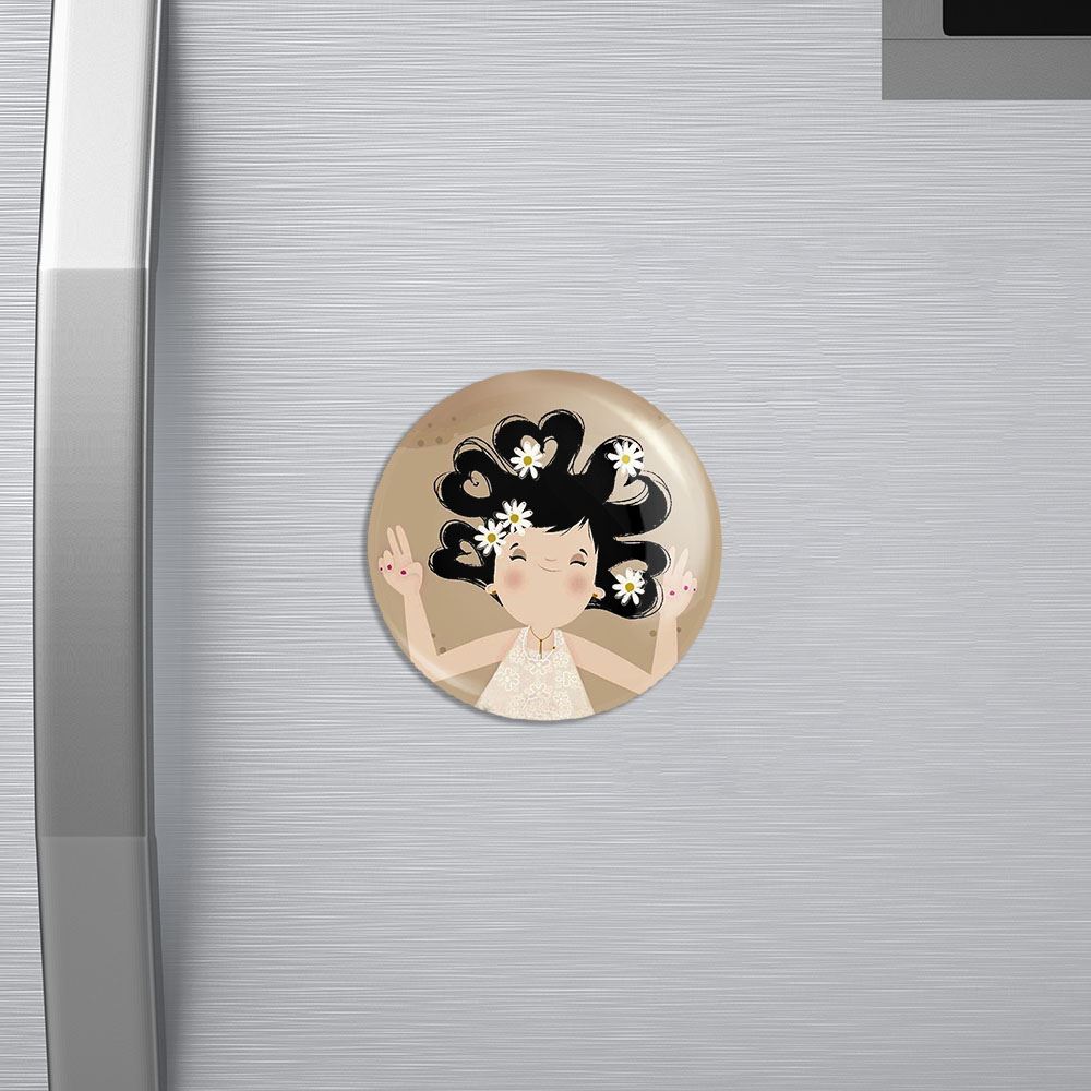 مگنت دخترونه خندالو با روکش سلفون مات مخملی ضدخش و قطعه پشتی فلزی تولید شده است که آهنربای اتمی بکار برده شده در محصول، بصورت مخفی تعبیه شده ودیده نمی شود. ضمن اینکه گیرایی بسیار بالایی داشته و به هیچ عنوان از روی یخچال نمی افتد.