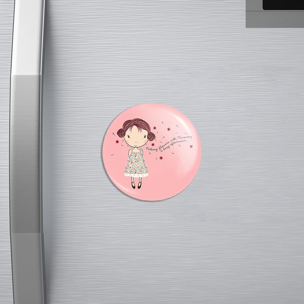 مگنت دخترونه خندالو با روکش سلفون مات مخملی ضدخش و قطعه پشتی فلزی تولید شده است که آهنربای اتمی بکار برده شده در محصول، بصورت مخفی تعبیه شده ودیده نمی شود. ضمن اینکه گیرایی بسیار بالایی داشته و به هیچ عنوان از روی یخچال نمی افتد.