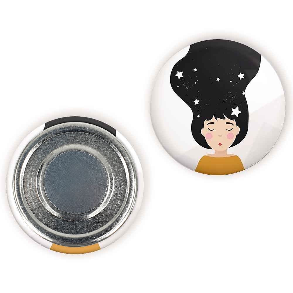 مگنت دخترونه خندالو با روکش سلفون مات مخملی ضدخش و قطعه پشتی فلزی تولید شده است که آهنربای اتمی بکار برده شده در محصول، بصورت مخفی تعبیه شده ودیده نمی شود. ضمن اینکه گیرایی بسیار بالایی داشته و به هیچ عنوان از روی یخچال نمی افتد.