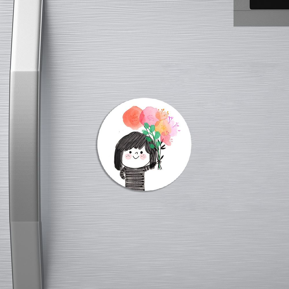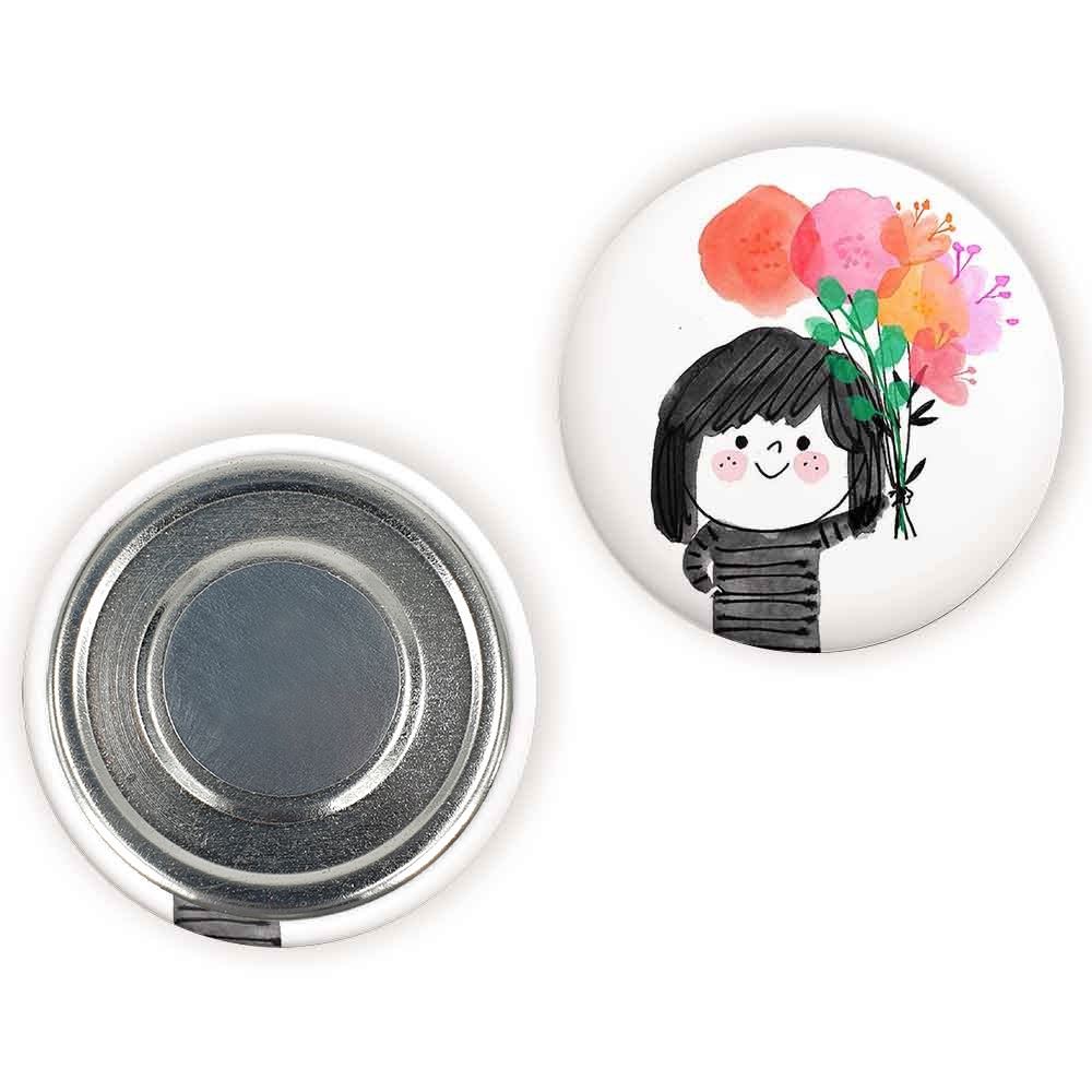 مگنت دخترونه خندالو با روکش سلفون مات مخملی ضدخش و قطعه پشتی فلزی تولید شده است که آهنربای اتمی بکار برده شده در محصول، بصورت مخفی تعبیه شده ودیده نمی شود. ضمن اینکه گیرایی بسیار بالایی داشته و به هیچ عنوان از روی یخچال نمی افتد.