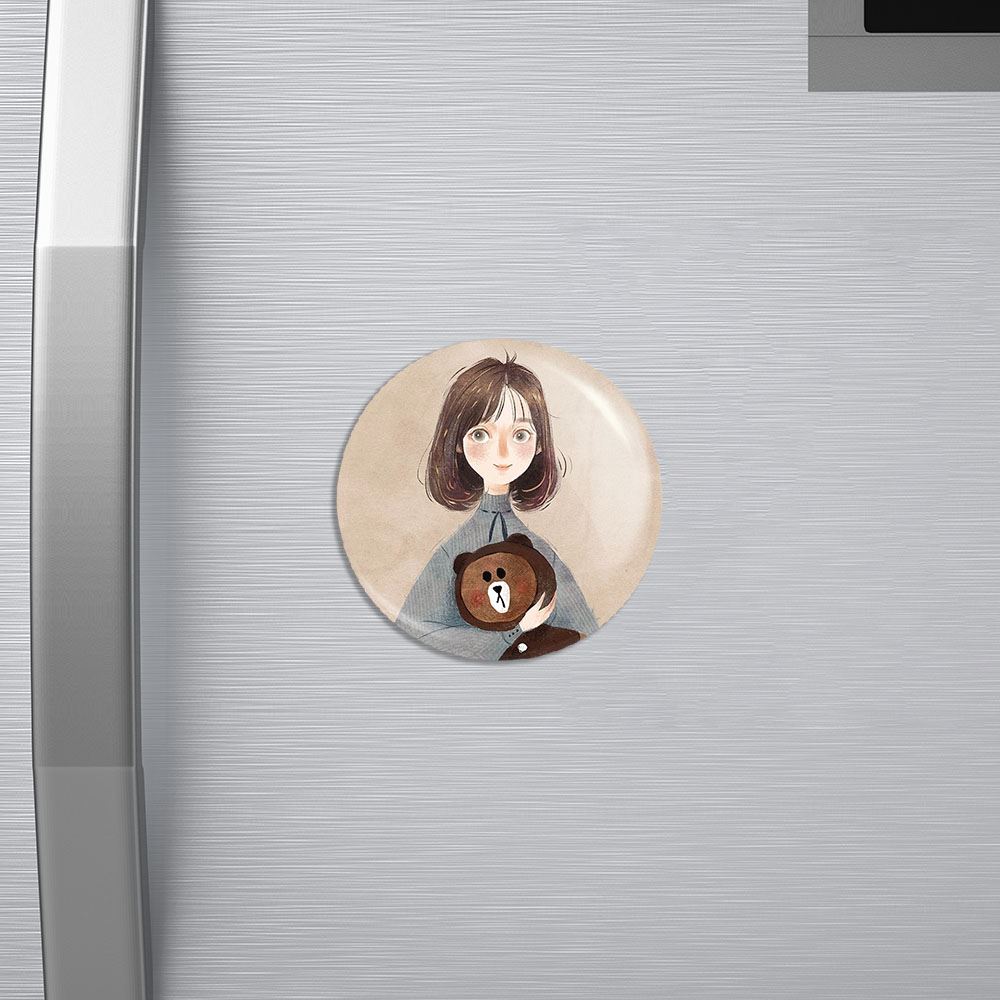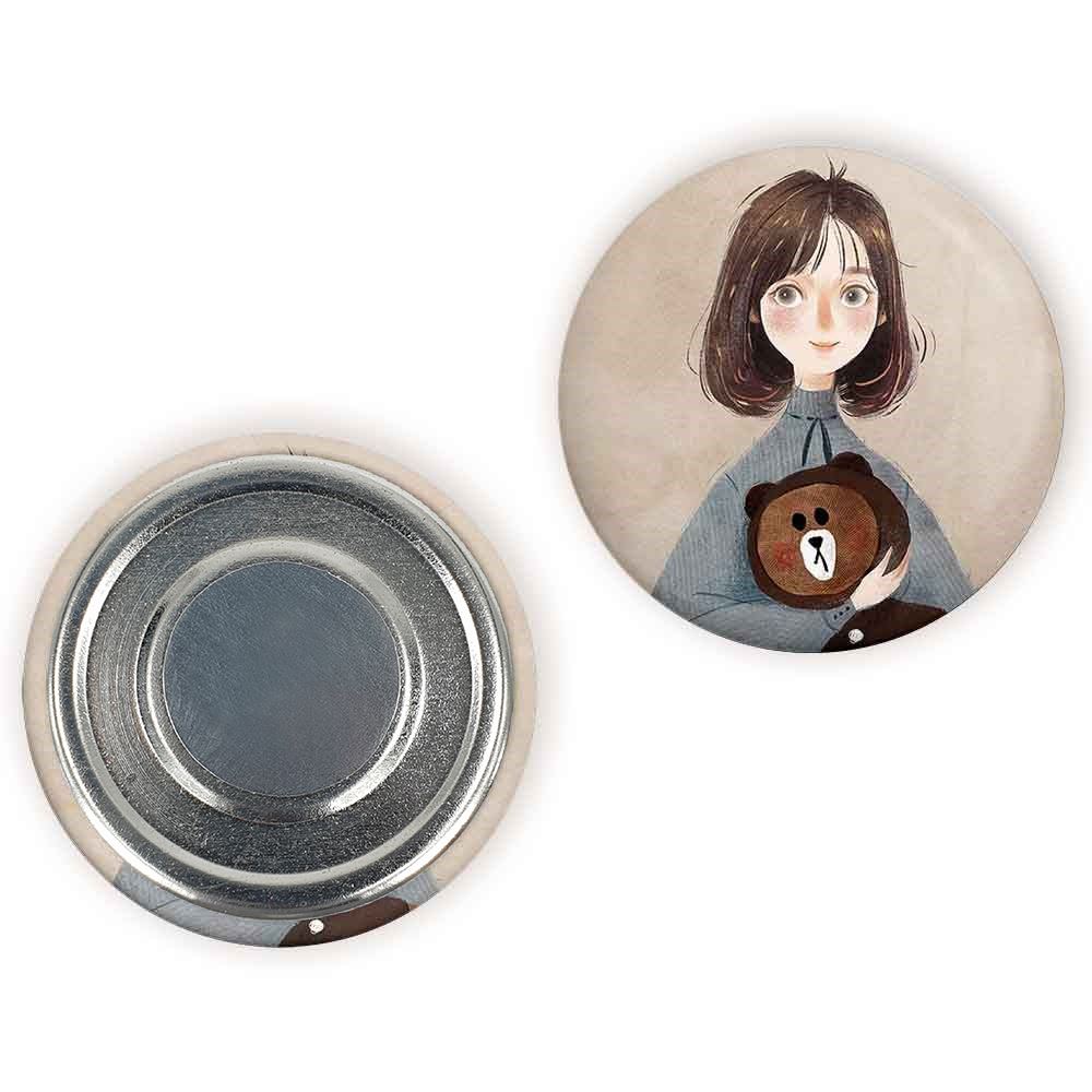 مگنت دخترونه خندالو با روکش سلفون مات مخملی ضدخش و قطعه پشتی فلزی تولید شده است که آهنربای اتمی بکار برده شده در محصول، بصورت مخفی تعبیه شده ودیده نمی شود. ضمن اینکه گیرایی بسیار بالایی داشته و به هیچ عنوان از روی یخچال نمی افتد.