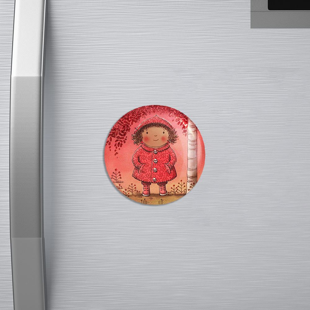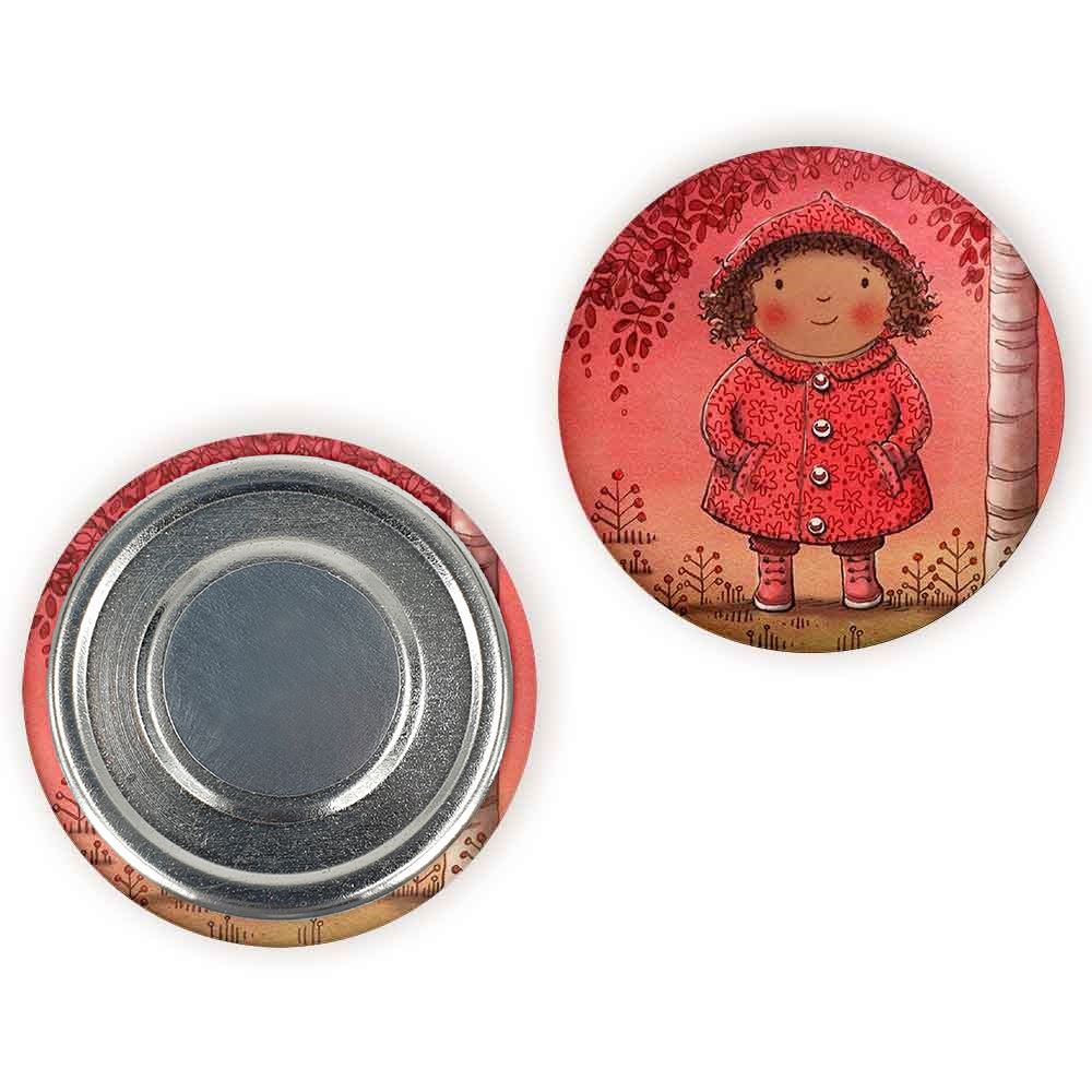 مگنت دخترونه خندالو با روکش سلفون مات مخملی ضدخش و قطعه پشتی فلزی تولید شده است که آهنربای اتمی بکار برده شده در محصول، بصورت مخفی تعبیه شده ودیده نمی شود. ضمن اینکه گیرایی بسیار بالایی داشته و به هیچ عنوان از روی یخچال نمی افتد.