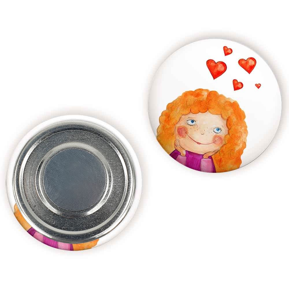 مگنت دخترونه خندالو با روکش سلفون مات مخملی ضدخش و قطعه پشتی فلزی تولید شده است که آهنربای اتمی بکار برده شده در محصول، بصورت مخفی تعبیه شده ودیده نمی شود. ضمن اینکه گیرایی بسیار بالایی داشته و به هیچ عنوان از روی یخچال نمی افتد.