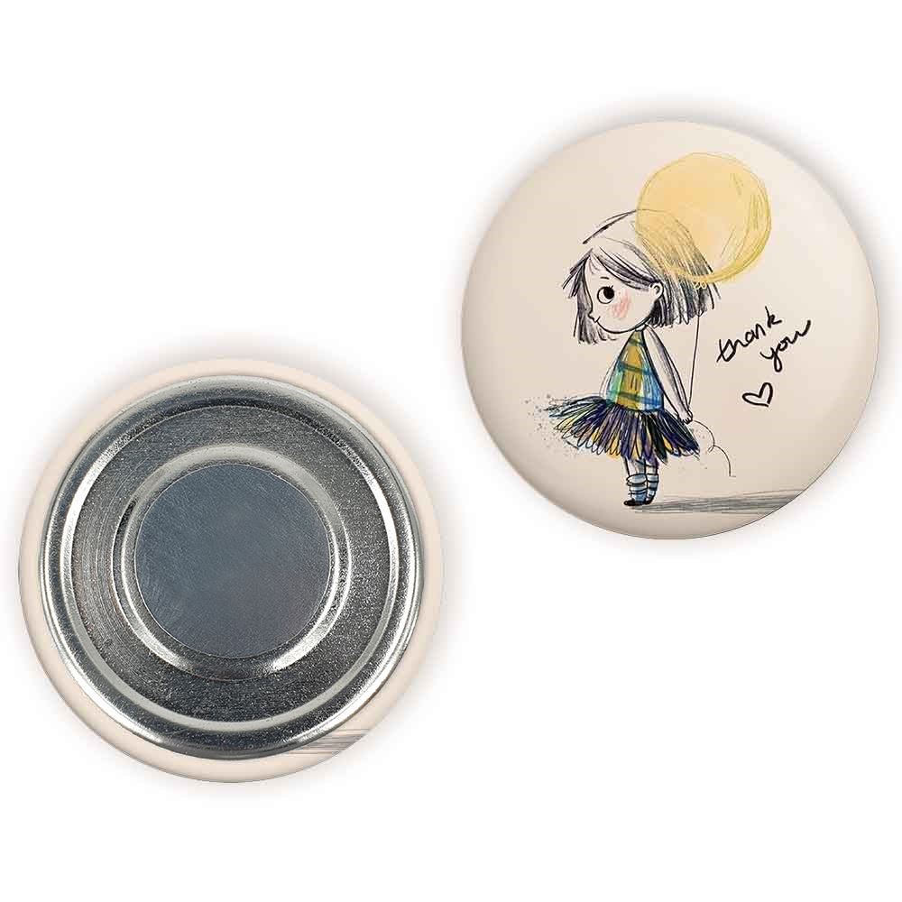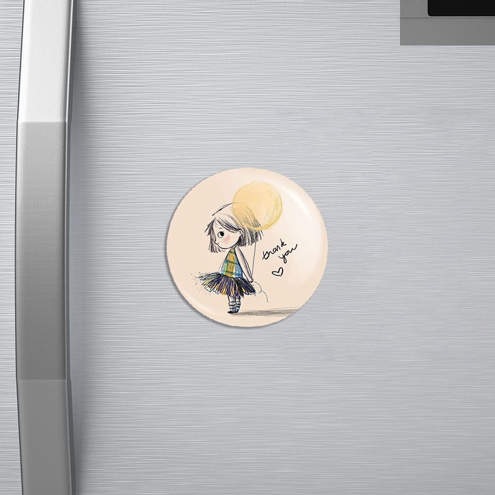 مگنت دخترونه خندالو با روکش سلفون مات مخملی ضدخش و قطعه پشتی فلزی تولید شده است که آهنربای اتمی بکار برده شده در محصول، بصورت مخفی تعبیه شده ودیده نمی شود. ضمن اینکه گیرایی بسیار بالایی داشته و به هیچ عنوان از روی یخچال نمی افتد.