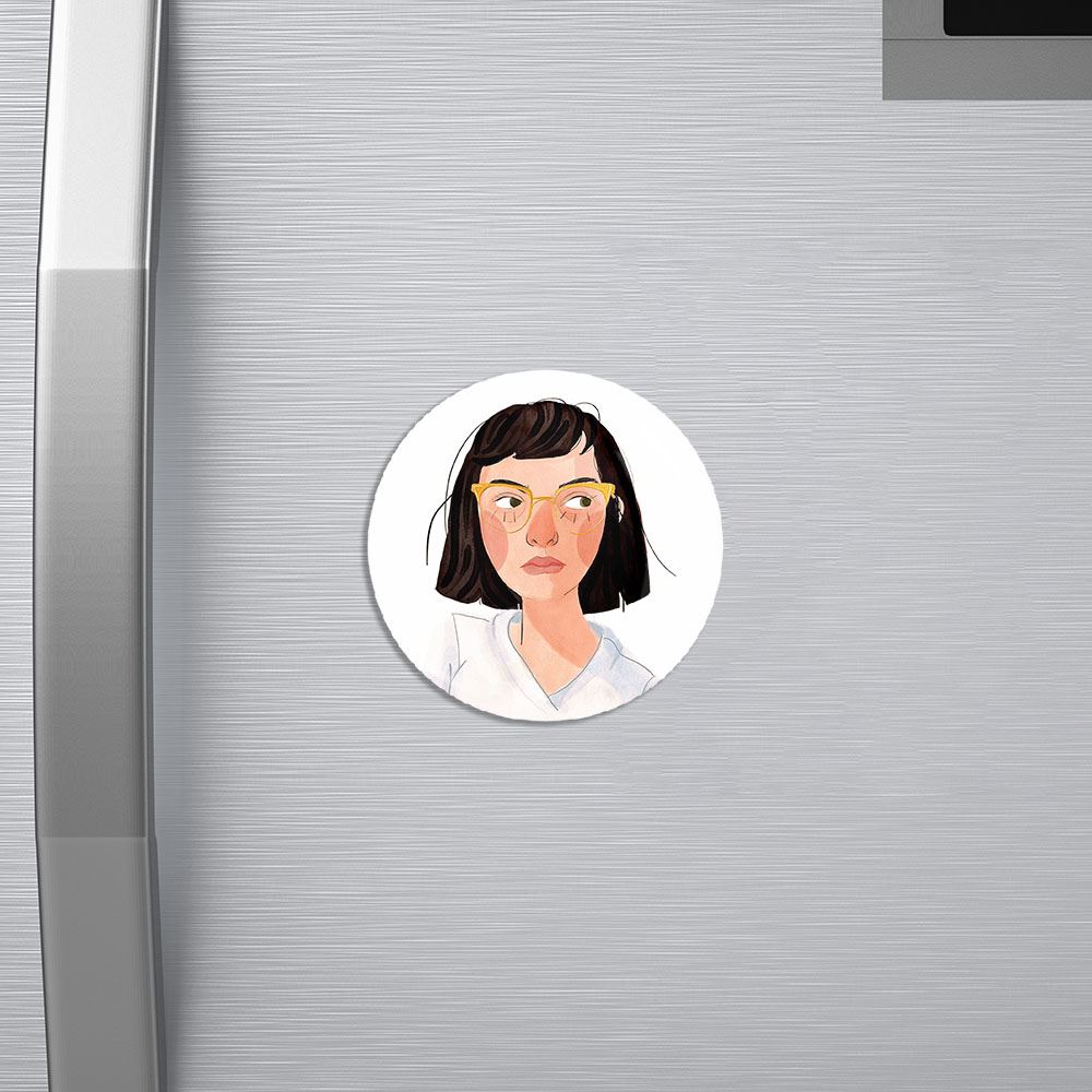 مگنت دخترونه خندالو با روکش سلفون مات مخملی ضدخش و قطعه پشتی فلزی تولید شده است که آهنربای اتمی بکار برده شده در محصول، بصورت مخفی تعبیه شده ودیده نمی شود. ضمن اینکه گیرایی بسیار بالایی داشته و به هیچ عنوان از روی یخچال نمی افتد.