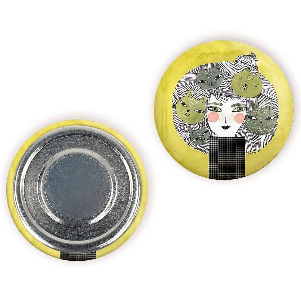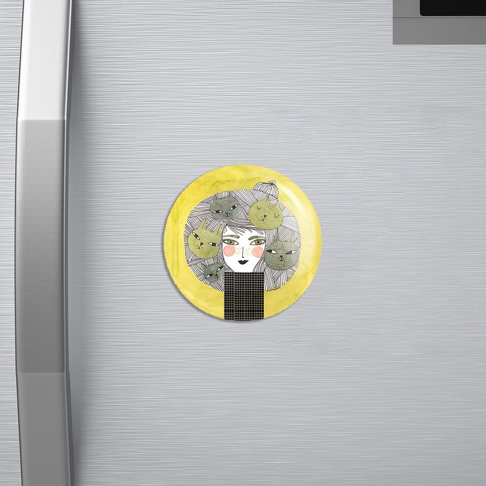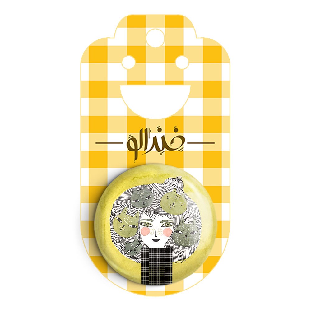 مگنت دخترونه خندالو با روکش سلفون مات مخملی ضدخش و قطعه پشتی فلزی تولید شده است که آهنربای اتمی بکار برده شده در محصول، بصورت مخفی تعبیه شده ودیده نمی شود. ضمن اینکه گیرایی بسیار بالایی داشته و به هیچ عنوان از روی یخچال نمی افتد.