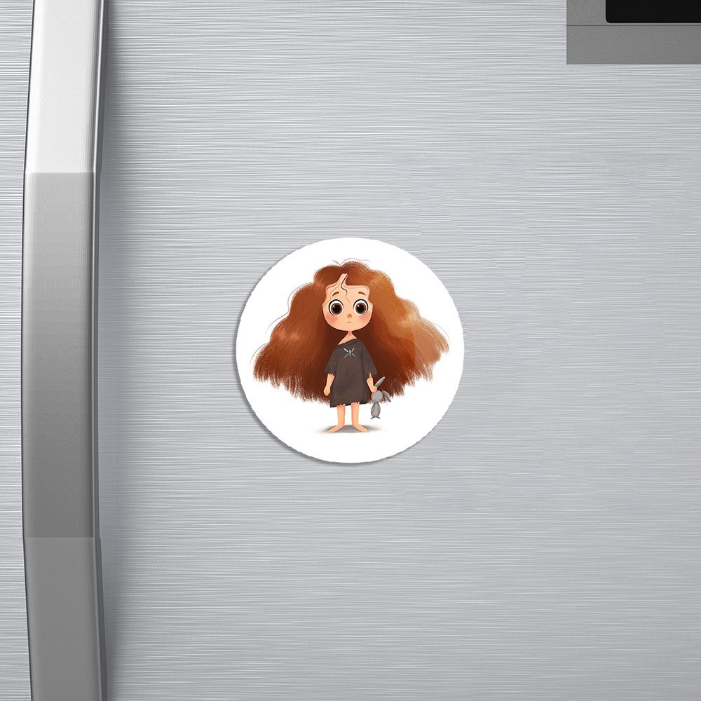 مگنت دخترونه خندالو با روکش سلفون مات مخملی ضدخش و قطعه پشتی فلزی تولید شده است که آهنربای اتمی بکار برده شده در محصول، بصورت مخفی تعبیه شده ودیده نمی شود. ضمن اینکه گیرایی بسیار بالایی داشته و به هیچ عنوان از روی یخچال نمی افتد.