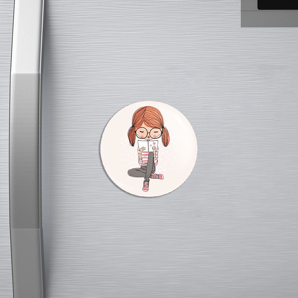 مگنت دخترونه خندالو با روکش سلفون مات مخملی ضدخش و قطعه پشتی فلزی تولید شده است که آهنربای اتمی بکار برده شده در محصول، بصورت مخفی تعبیه شده ودیده نمی شود. ضمن اینکه گیرایی بسیار بالایی داشته و به هیچ عنوان از روی یخچال نمی افتد.