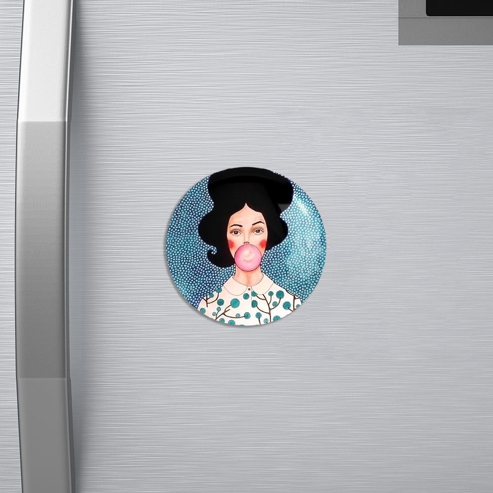 مگنت دخترونه خندالو با روکش سلفون مات مخملی ضدخش و قطعه پشتی فلزی تولید شده است که آهنربای اتمی بکار برده شده در محصول، بصورت مخفی تعبیه شده ودیده نمی شود. ضمن اینکه گیرایی بسیار بالایی داشته و به هیچ عنوان از روی یخچال نمی افتد.