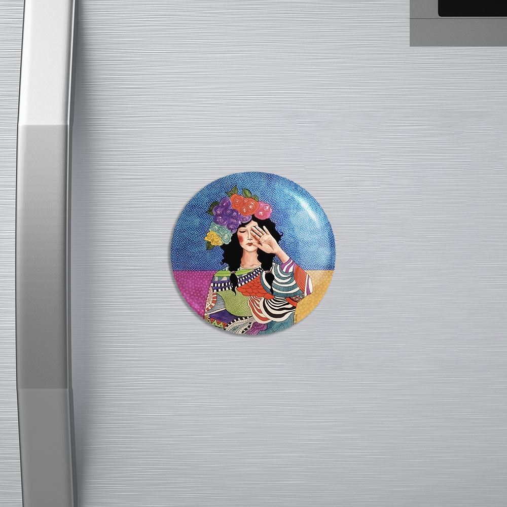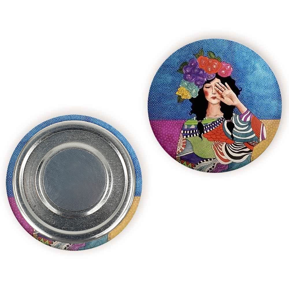 مگنت دخترونه خندالو با روکش سلفون مات مخملی ضدخش و قطعه پشتی فلزی تولید شده است که آهنربای اتمی بکار برده شده در محصول، بصورت مخفی تعبیه شده ودیده نمی شود. ضمن اینکه گیرایی بسیار بالایی داشته و به هیچ عنوان از روی یخچال نمی افتد.