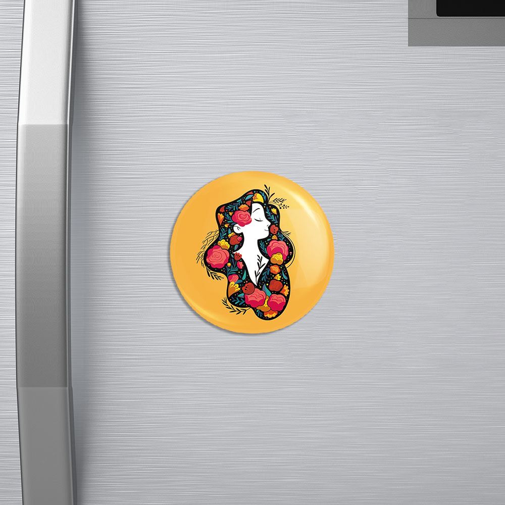 مگنت دخترونه خندالو با روکش سلفون مات مخملی ضدخش و قطعه پشتی فلزی تولید شده است که آهنربای اتمی بکار برده شده در محصول، بصورت مخفی تعبیه شده ودیده نمی شود. ضمن اینکه گیرایی بسیار بالایی داشته و به هیچ عنوان از روی یخچال نمی افتد.